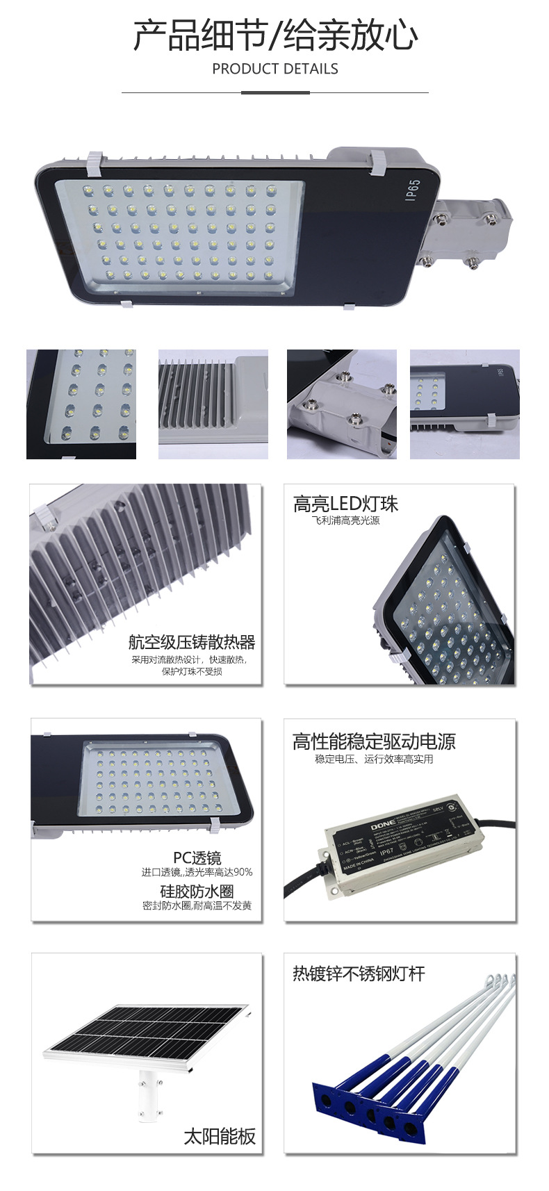 Lámpara de calle solar montada en la pared de la fábrica al por mayor Golden Bean 50W