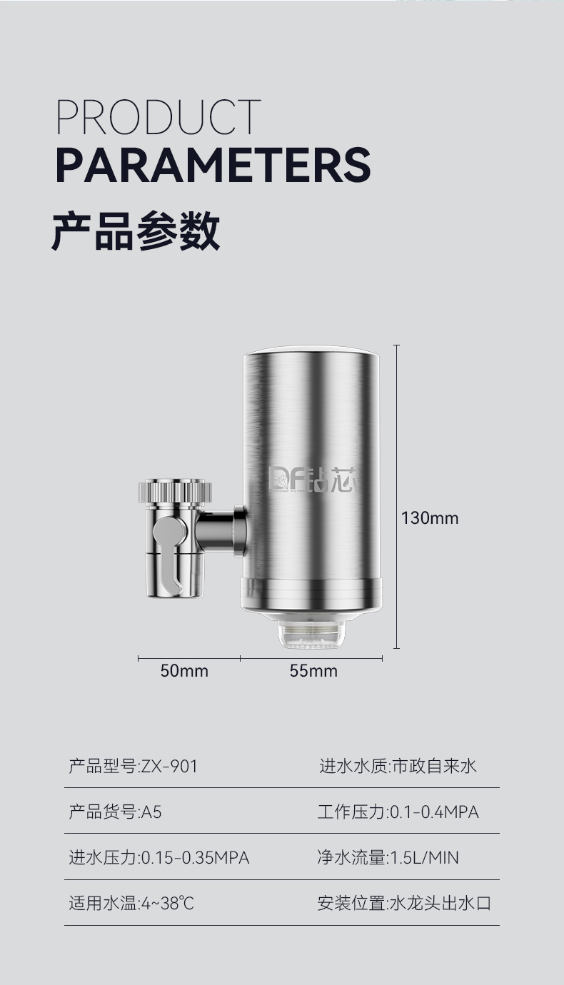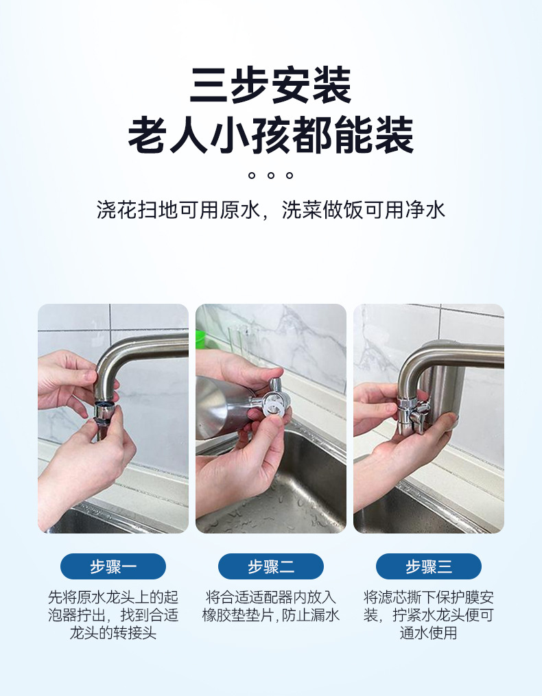 Filtro de grifo de acero inoxidable para purificar agua delantera de cocina doméstica y baño de agua del grifo de cerámica desmontable elemento filtrante personalizado