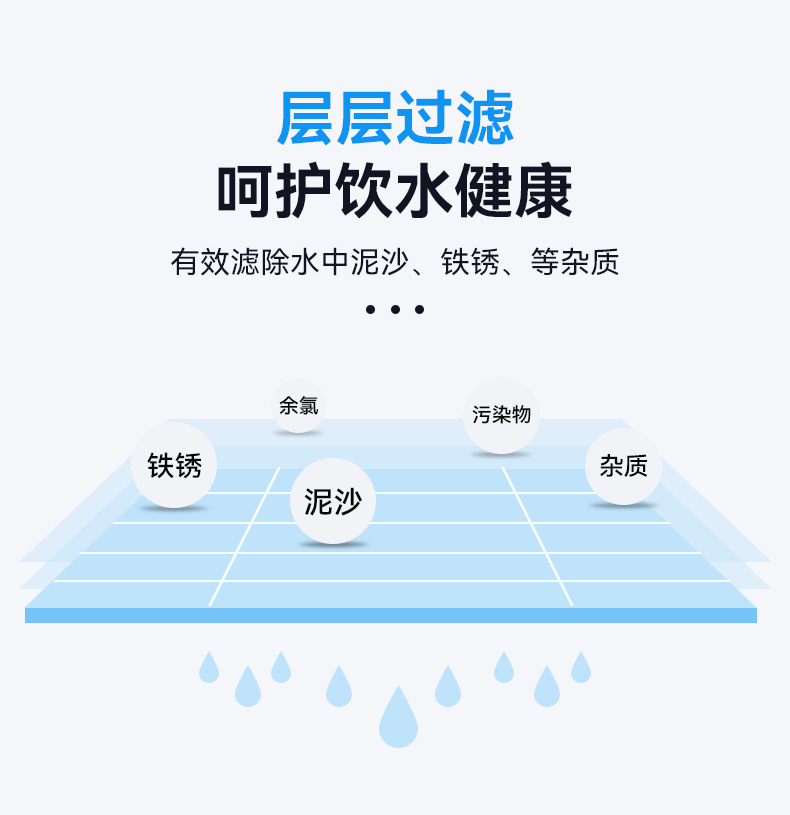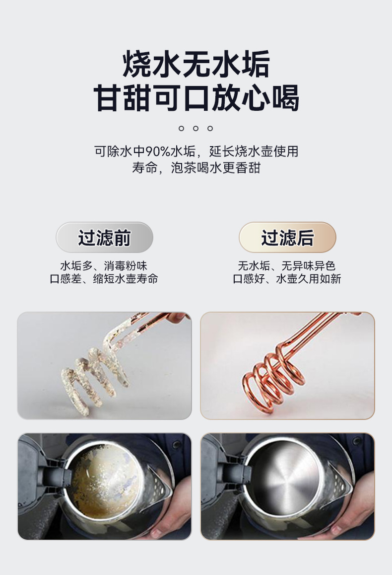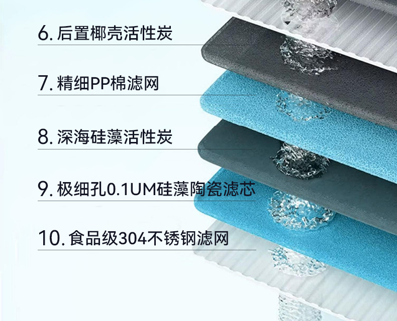 | Efectos de purificación de agua | Eliminación de cloro, eliminación de metales pesados, eliminación de óxido, eliminación de sedimentos, eliminación de compuestos orgánicos, eliminación de bacterias, eliminación de virus, otros |