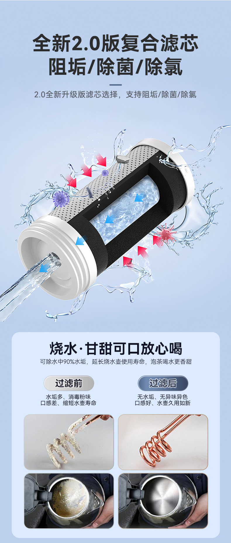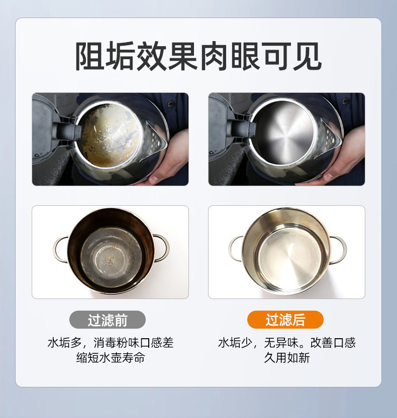 | Efectos de purificación de agua | Eliminación de escala y cloro |
