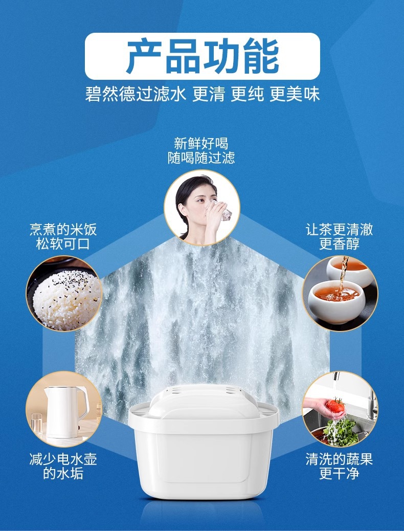 Compatible con el cartucho de filtro BR1TA, purificador de agua ABS, filtración universal, descalcificación, instalación sin herramientas, uso doméstico portátil, fabricado en Alemania.