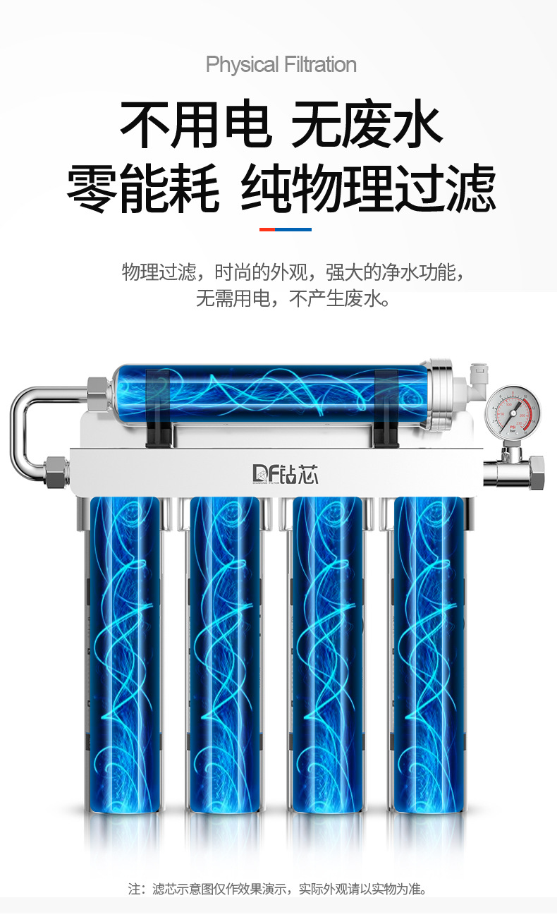 Purificador de agua doméstico de acero inoxidable de grado alimenticio sin enchufe, sin ultrafiltración de aguas residuales, purificador de agua de cinco niveles, transmisión en vivo transfronteriza