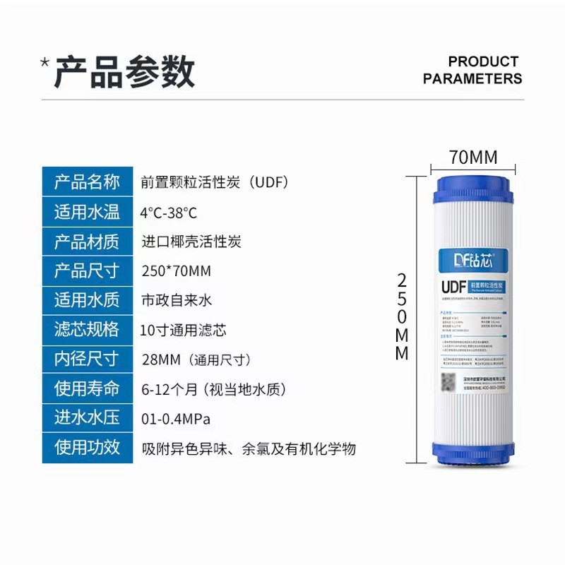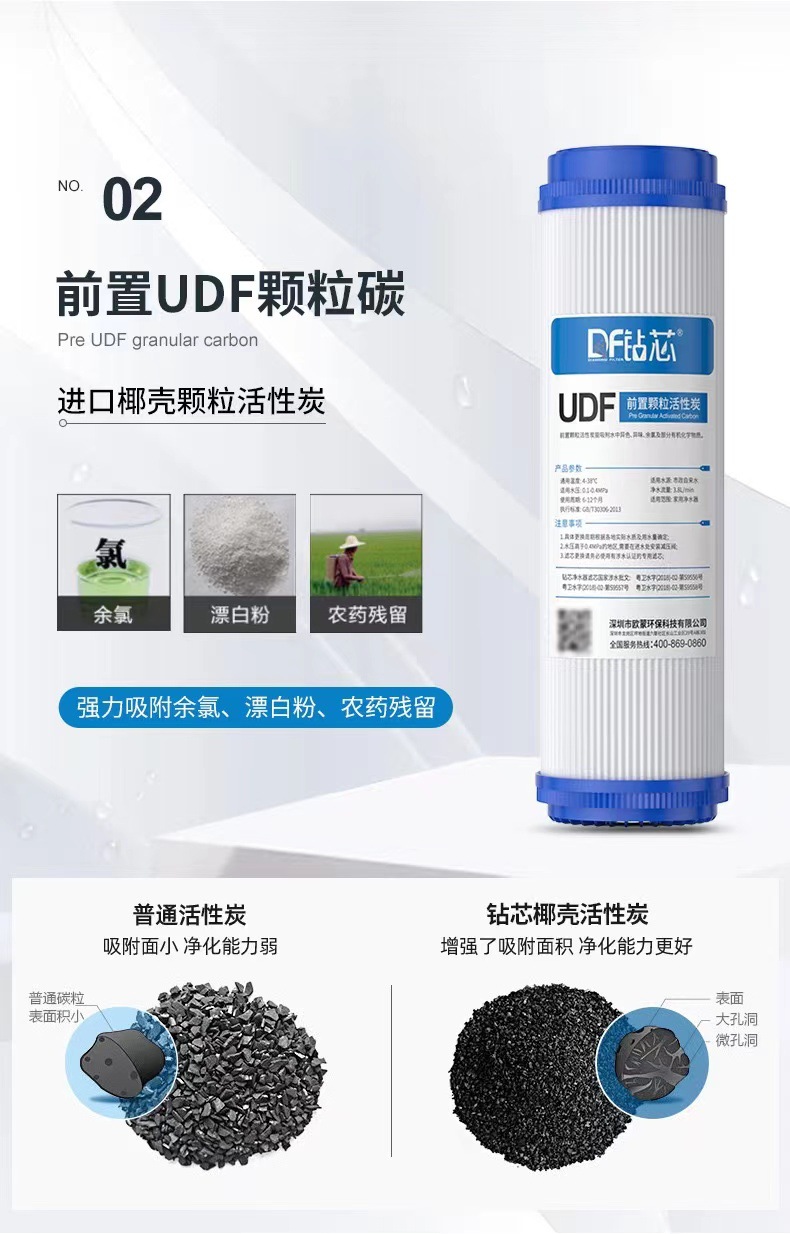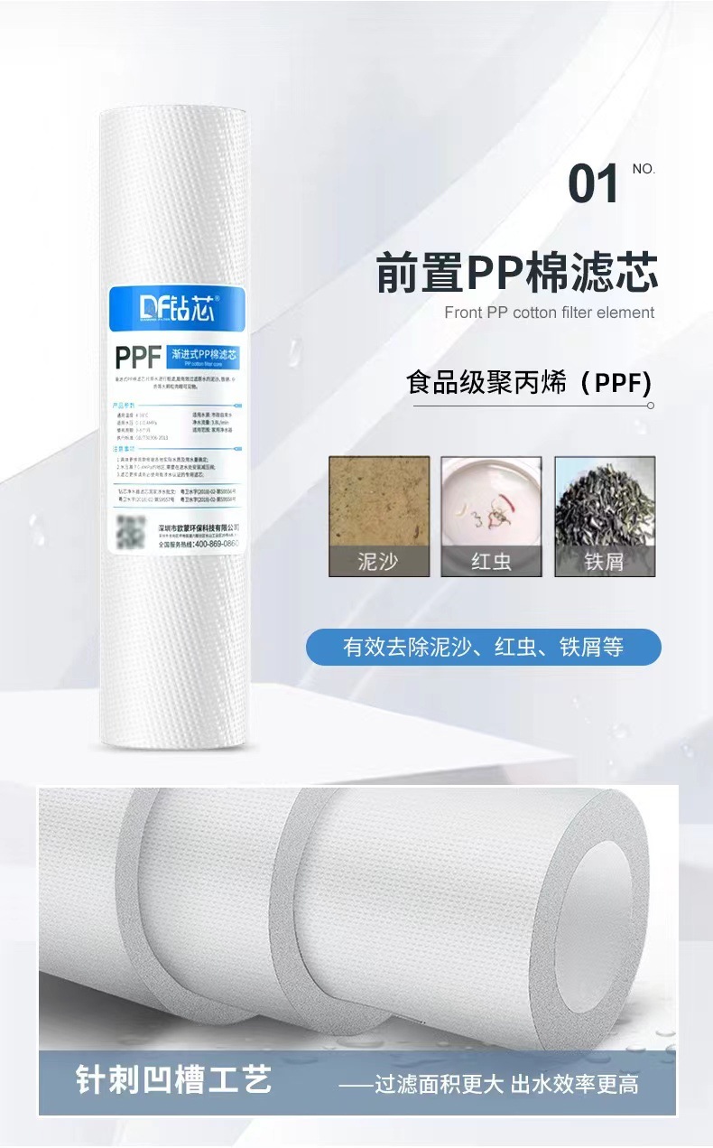 Juego de elemento filtrante purificador de agua 10 pulgadas boca plana universal PP algodón granular carbón activado membrana de ultrafiltración membrana RO carbón inhibidor de incrustaciones