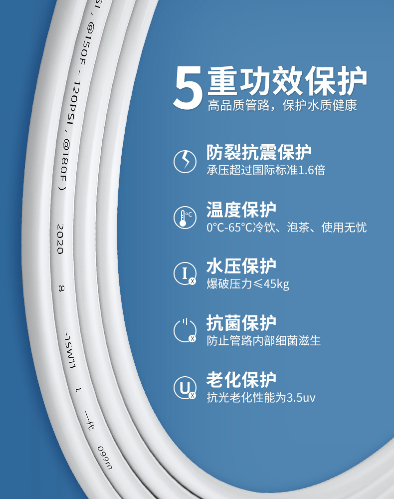 Purificador de agua tubería de agua 2 puntos 3 puntos tubería de PE universal con medidor estándar respetuoso con el medio ambiente e inodoro accesorios de purificador de agua comercial para el hogar purificación