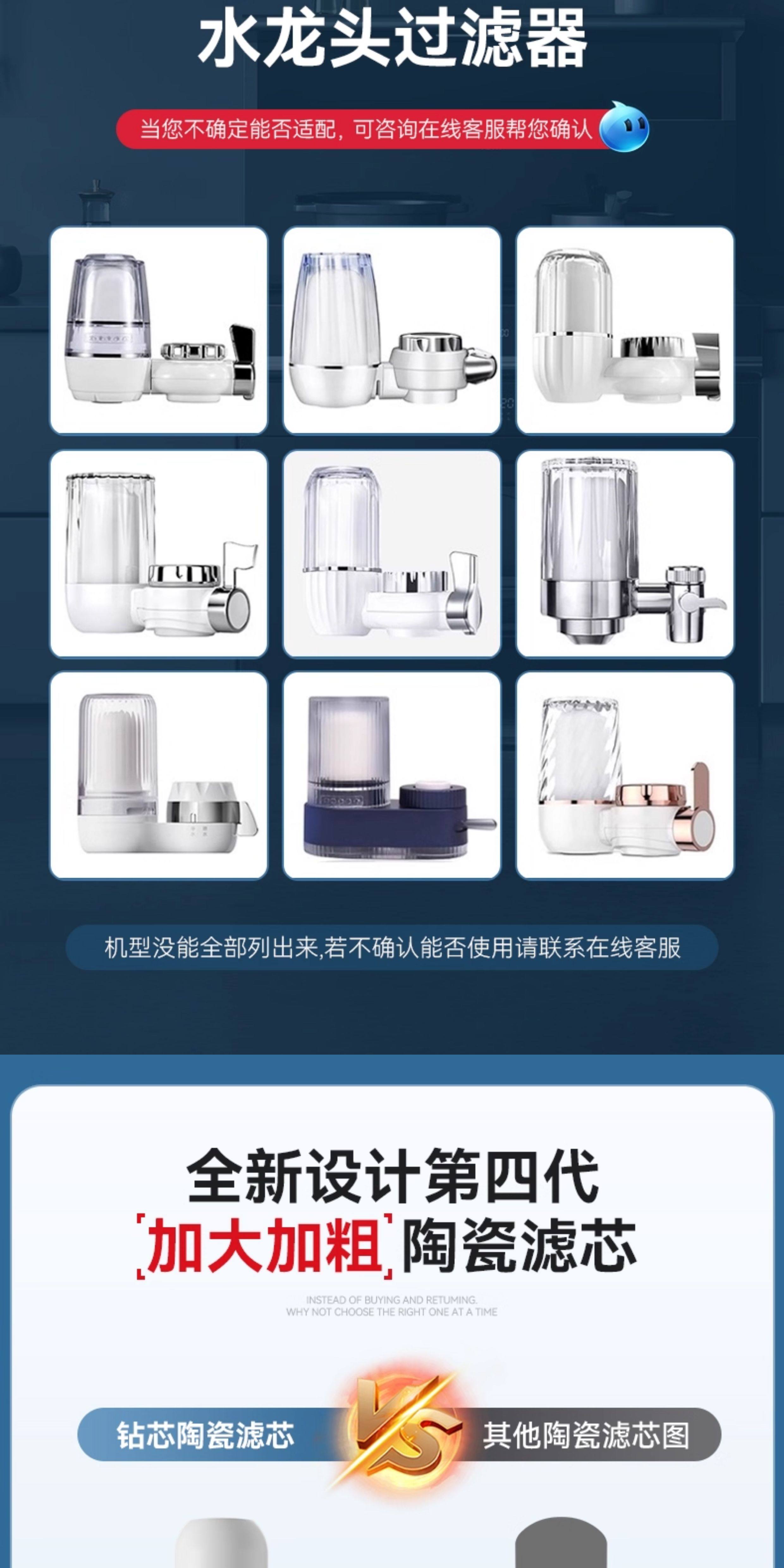 Filtro de grifo, filtro de cocina doméstica universal, filtro de agua de grifo, filtro de cerámica, accesorios para el filtro al por mayor