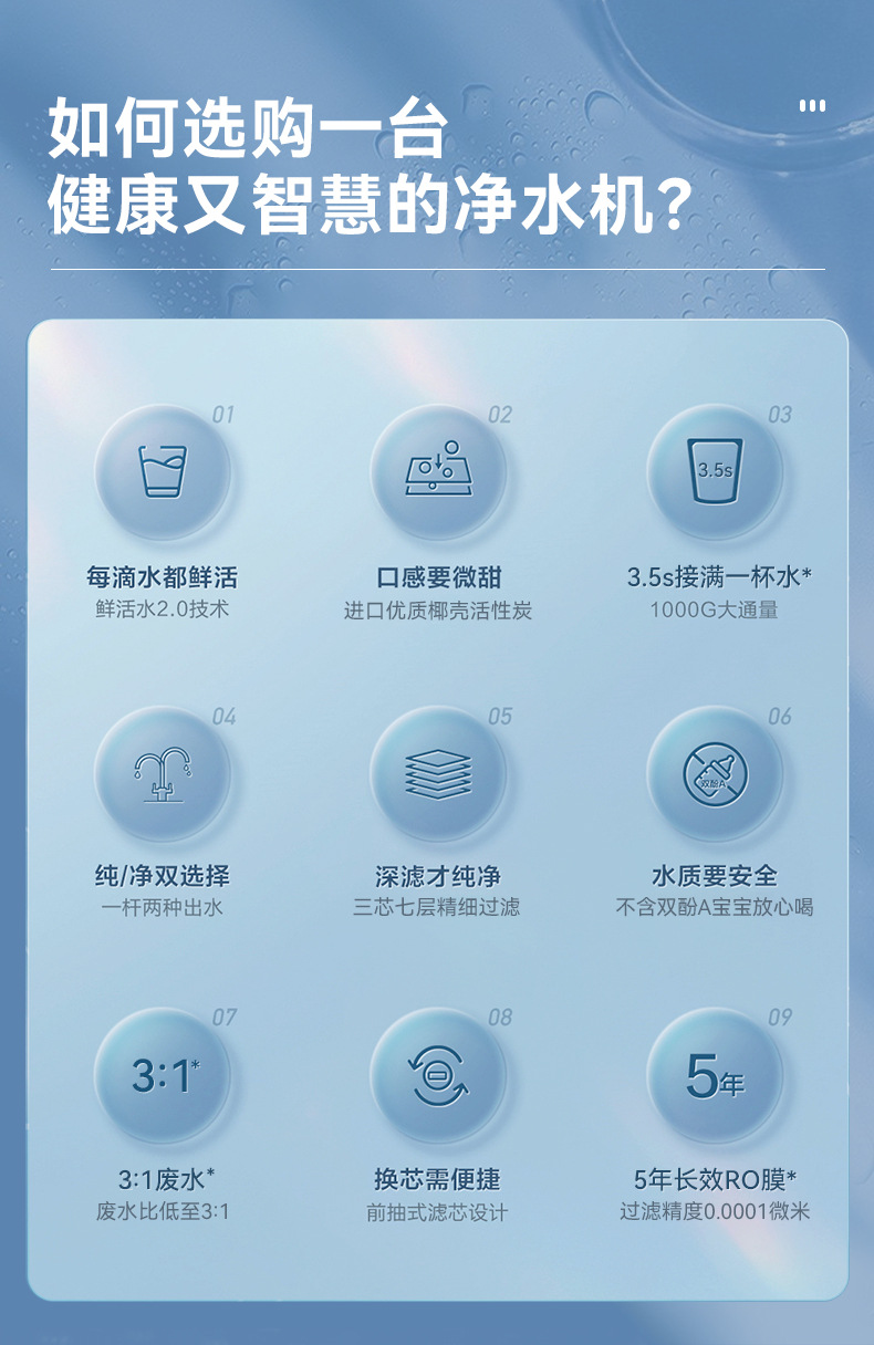 Purificador de agua de ósmosis inversa, consumo directo doméstico, nuevo purificador de agua de bebida directo inteligente 1000G, purificador de agua con filtro de agua del grifo