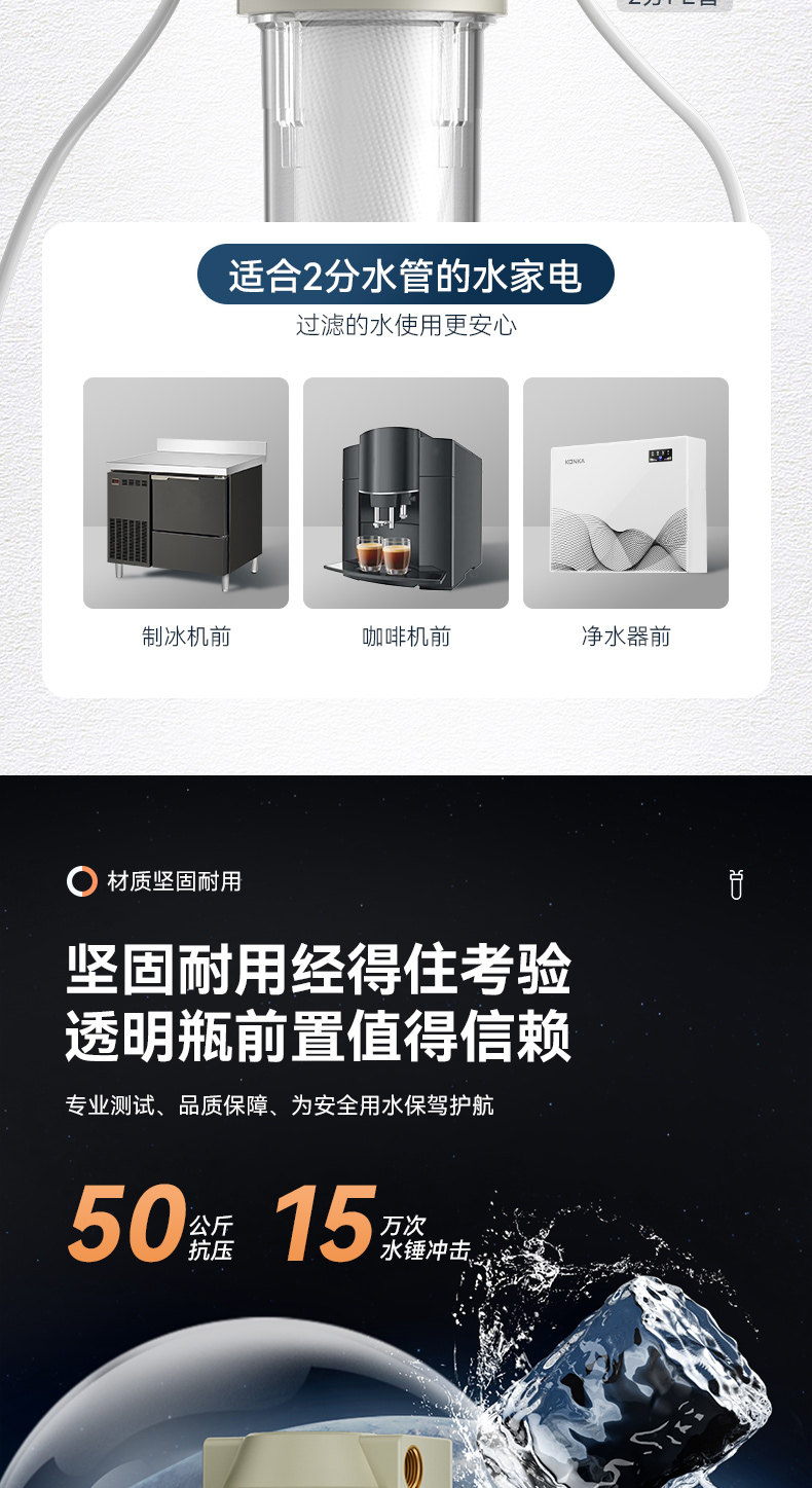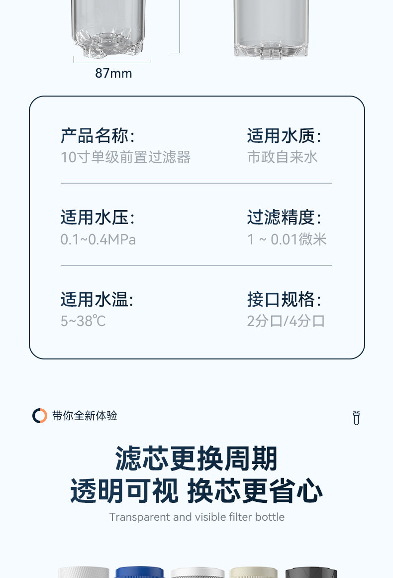 Filtro de agua compañero de 10 pulgadas filtro frontal de cocina casera botella de filtro transparente de agua del grifo carbón PP filtro de algodón