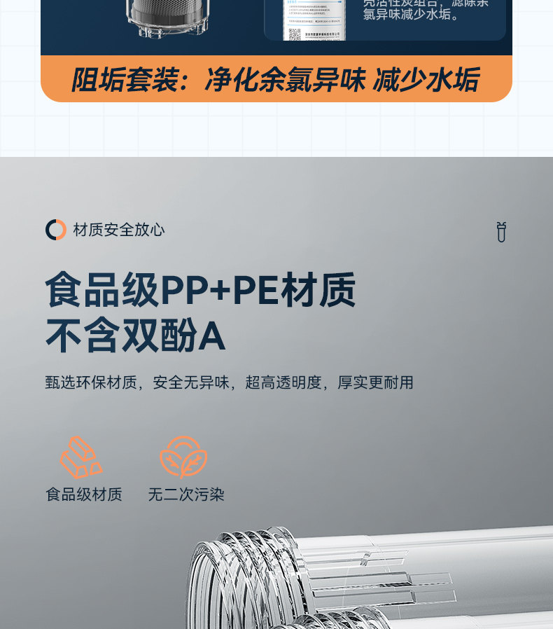 Actualización de la boca de cobre + 1 elemento de filtro de carbono inhibidor de escala