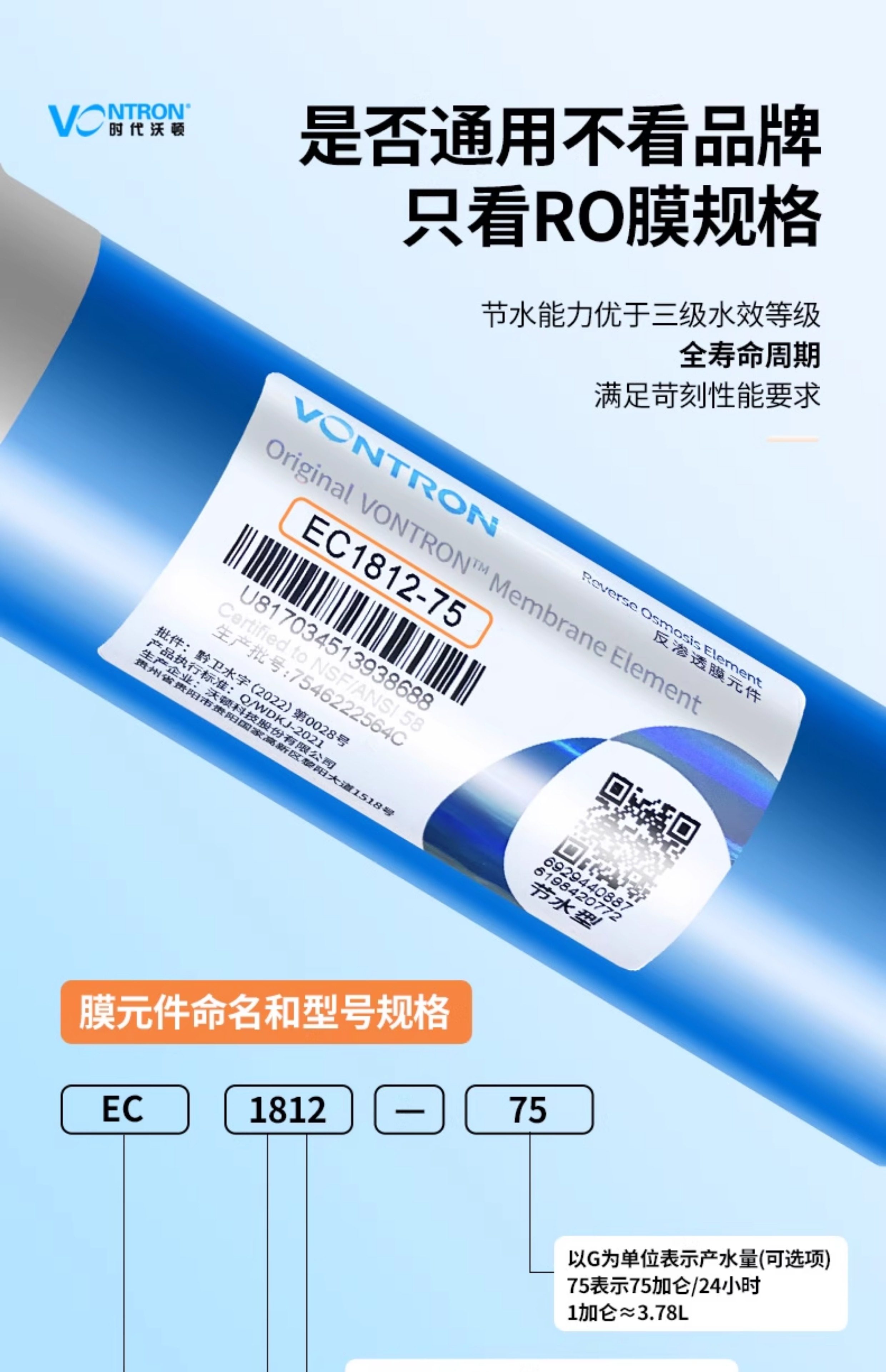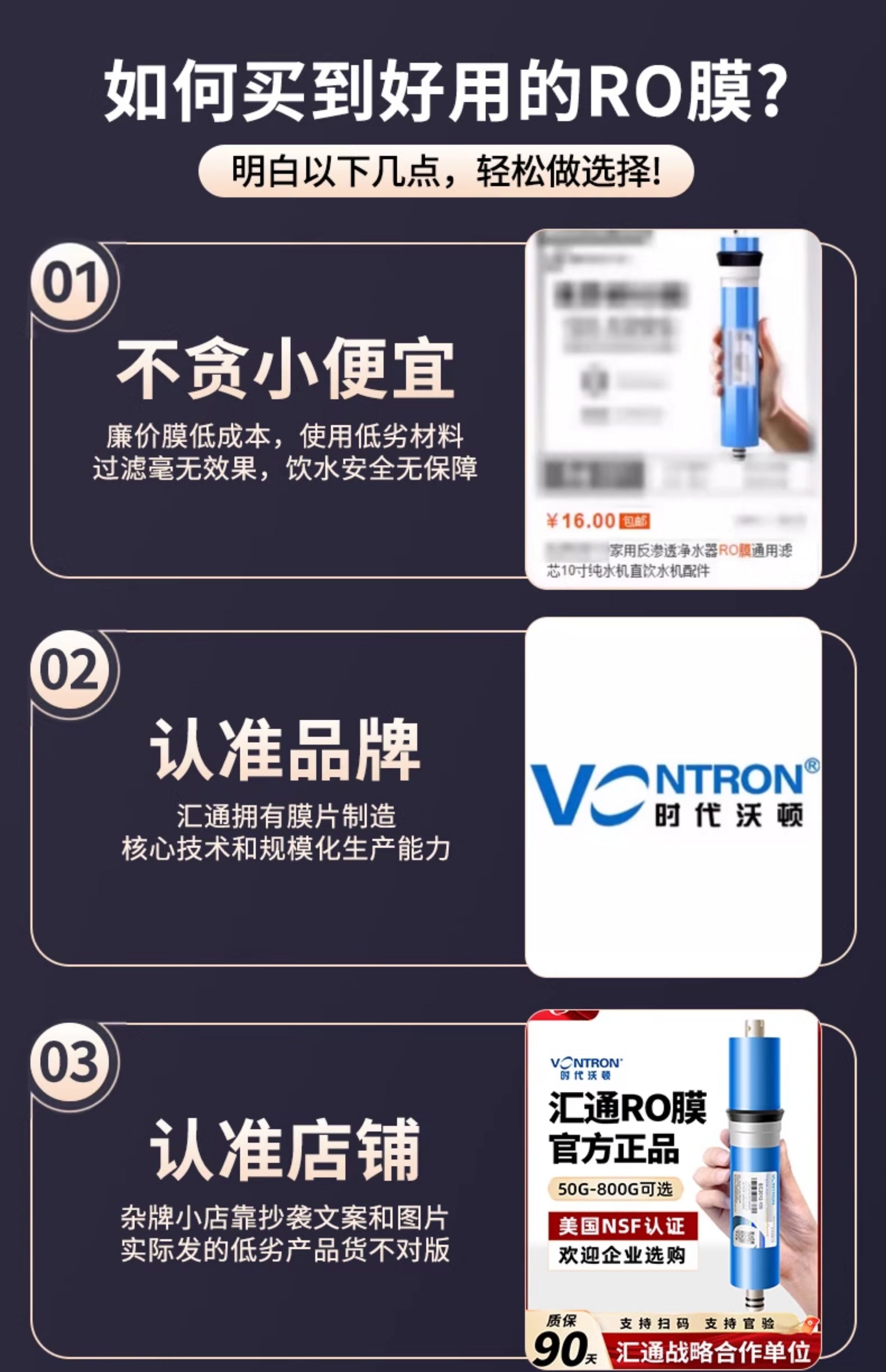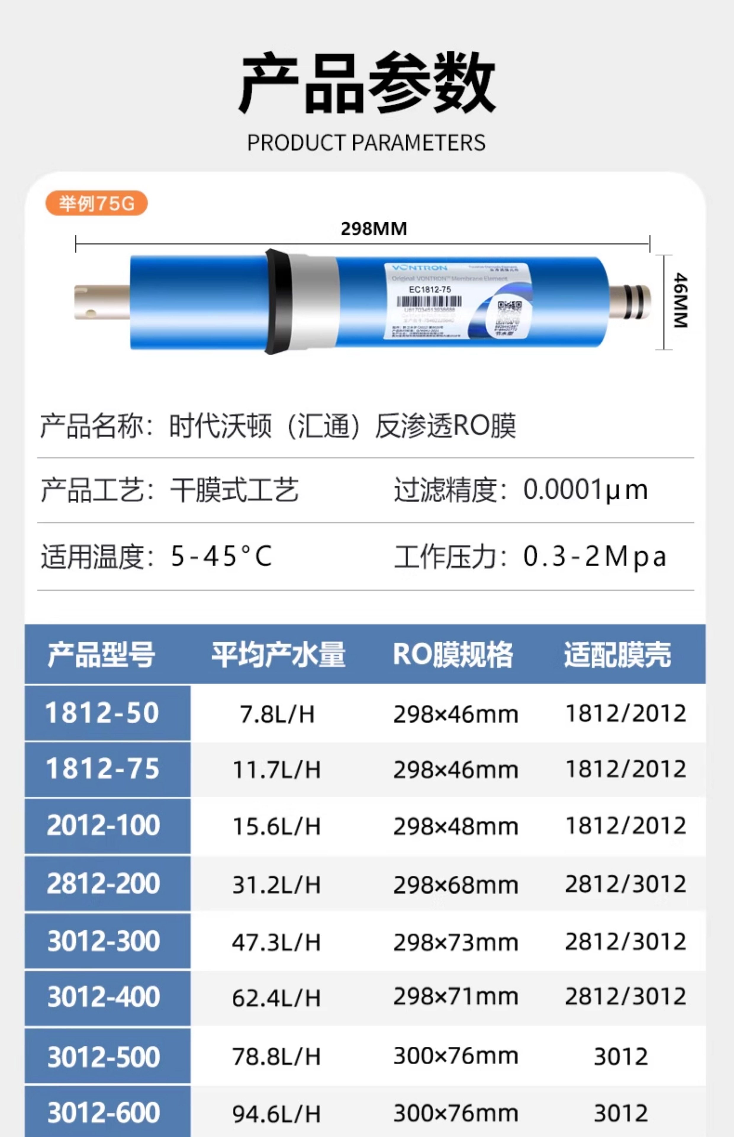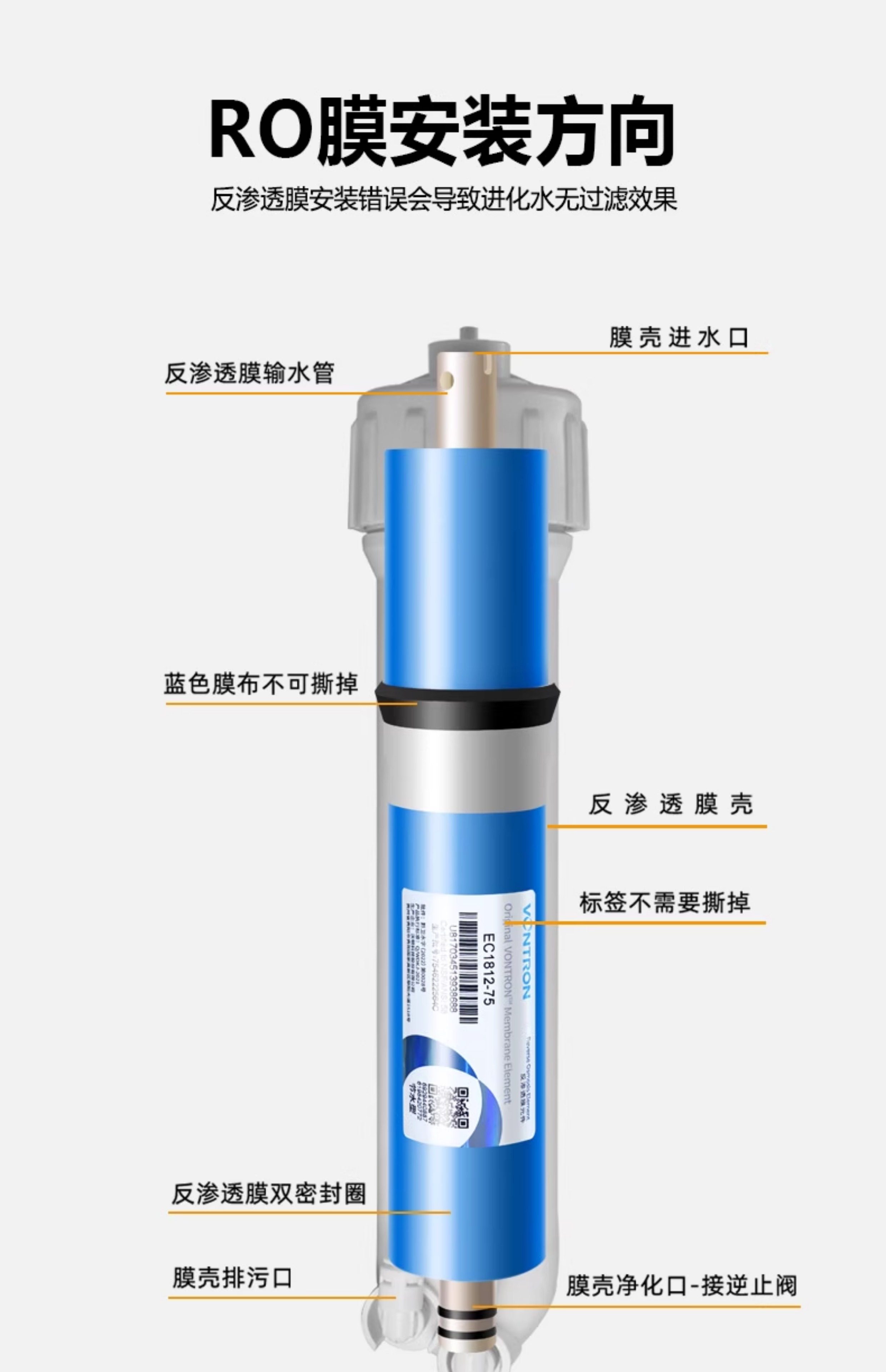 Auténtico Watton Hui Tong Ro membrana filtro de membrana de ósmosis inversa membrana industrial universal accesorios de purificador de agua al por mayor