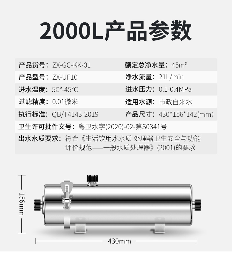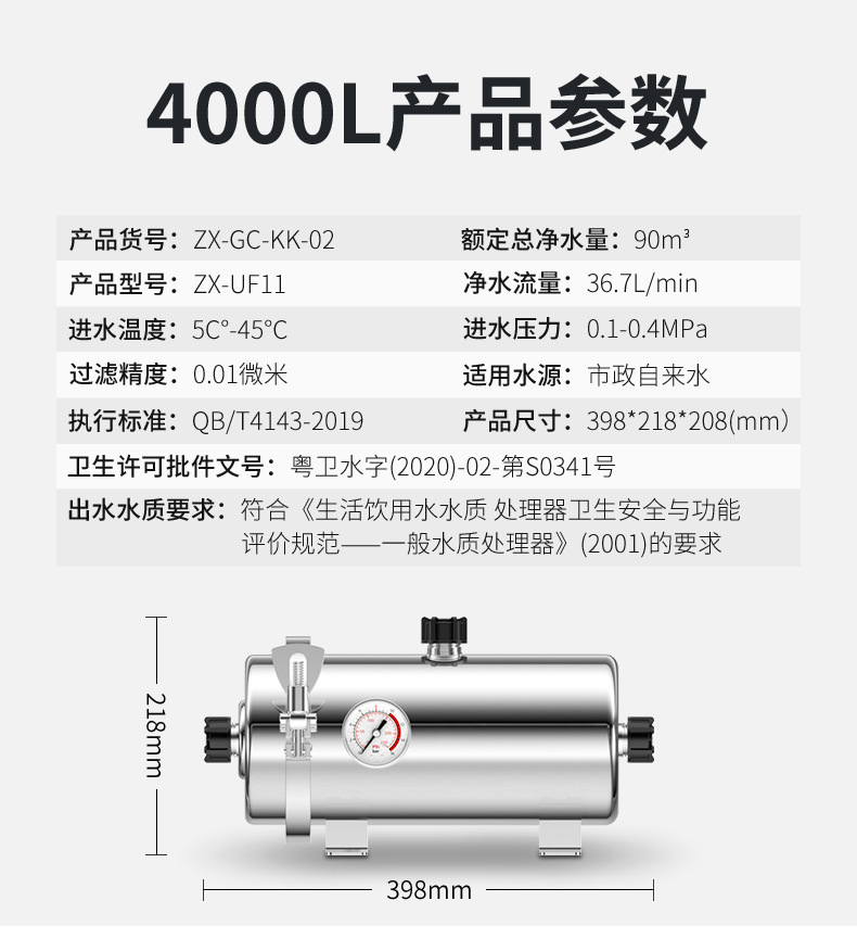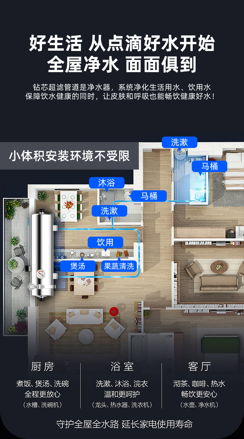 Purificador de agua de acero inoxidable, ultrafiltración de toda la casa, filtro central desmontable 2000L40006000L purificador de agua