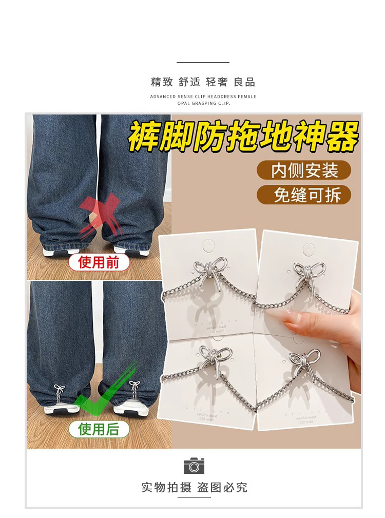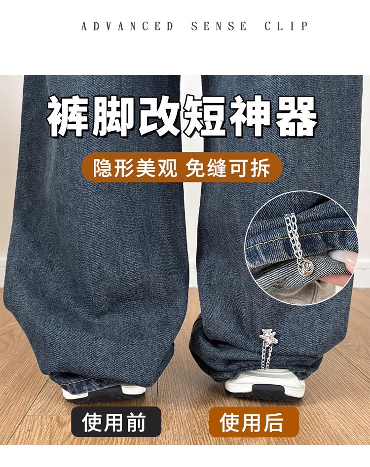 Pantalones anti-derrapante, pantalones demasiado largos, botón de ajuste corto, botón de borde libre, pin de ropa fijación