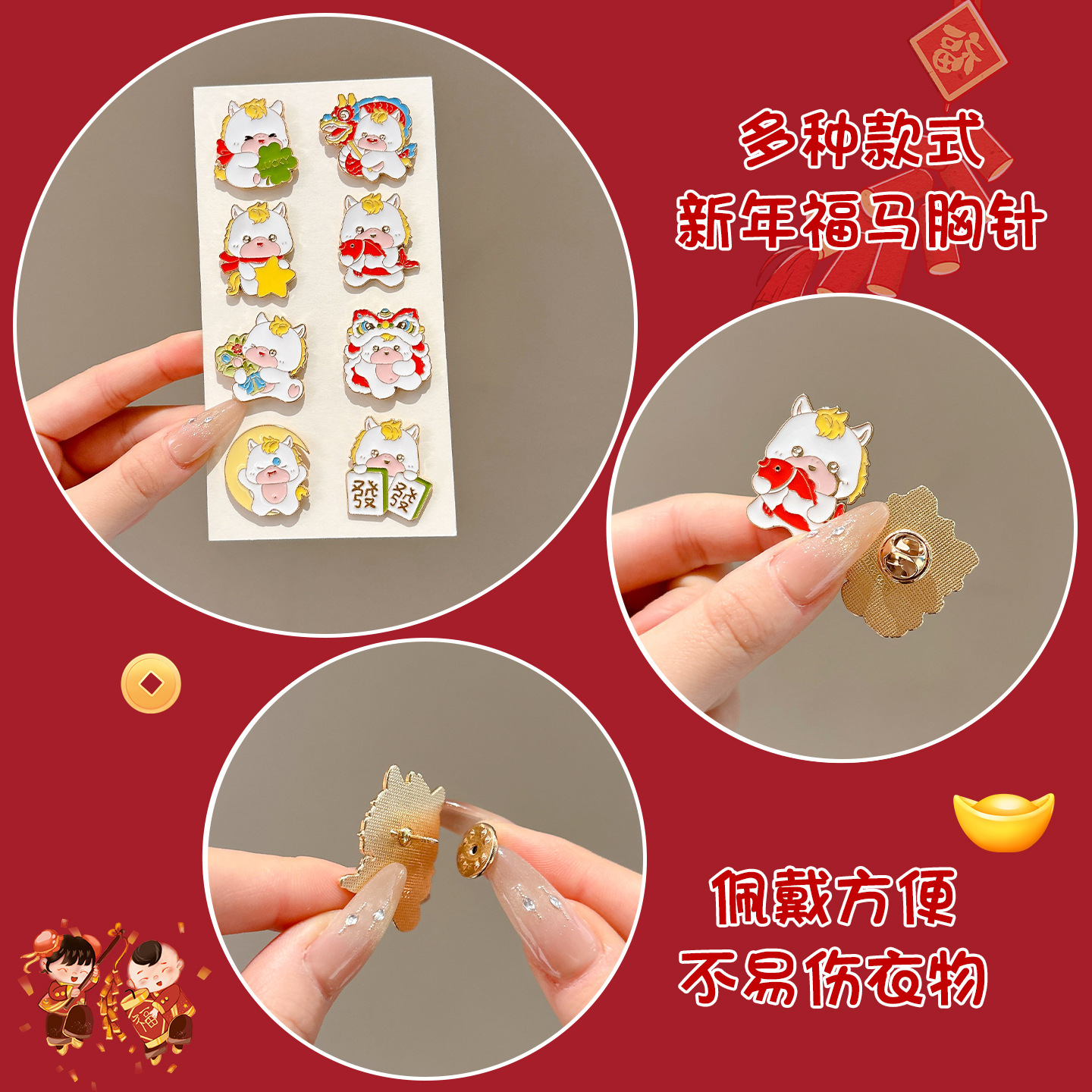 2026 Año Nuevo broche de dibujos animados Año del Caballo pequeño regalo pin accesorios insignia de Año Nuevo para niños decoraciones navideñas al por mayor