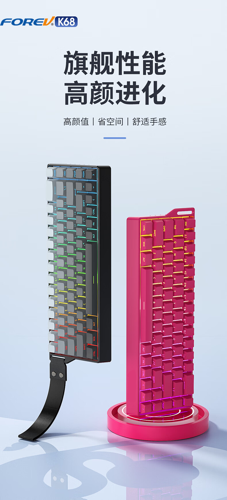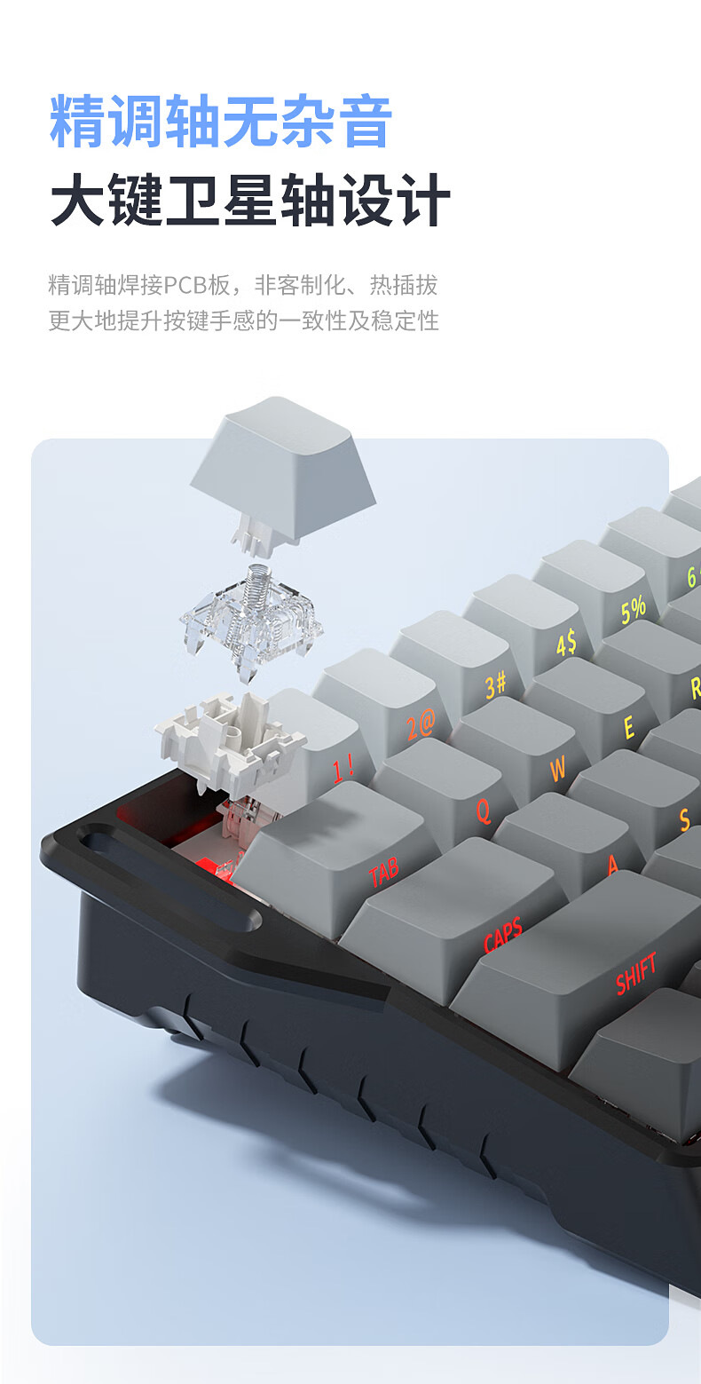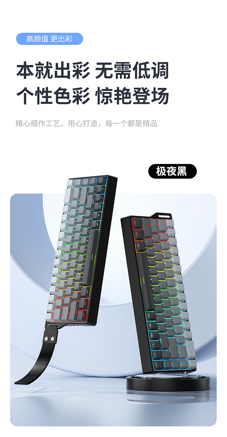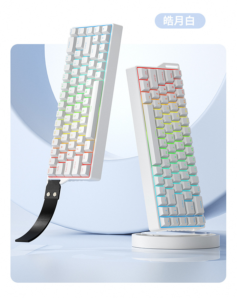 Teclado mecánico de deportes electrónicos FV K68 conexión de tres modos 68 teclas para juegos especiales de teclas completas en caliente intercambiable RGB efecto de luz de color