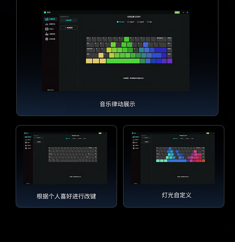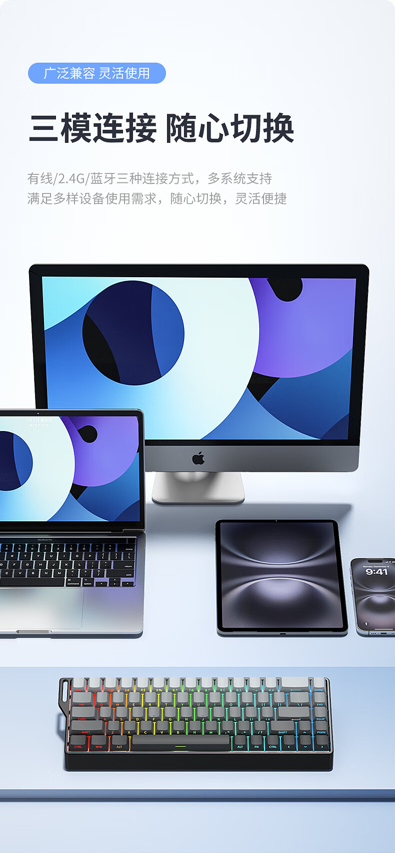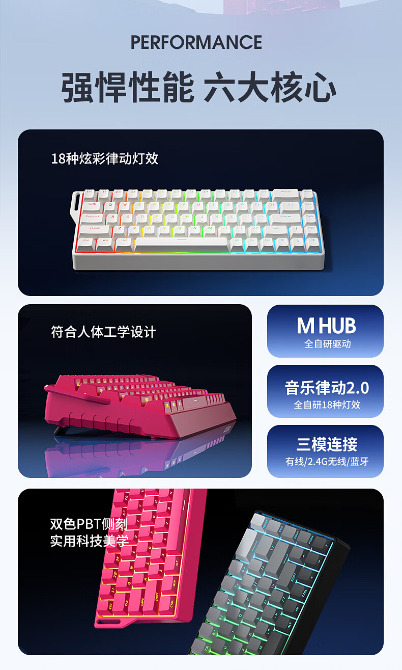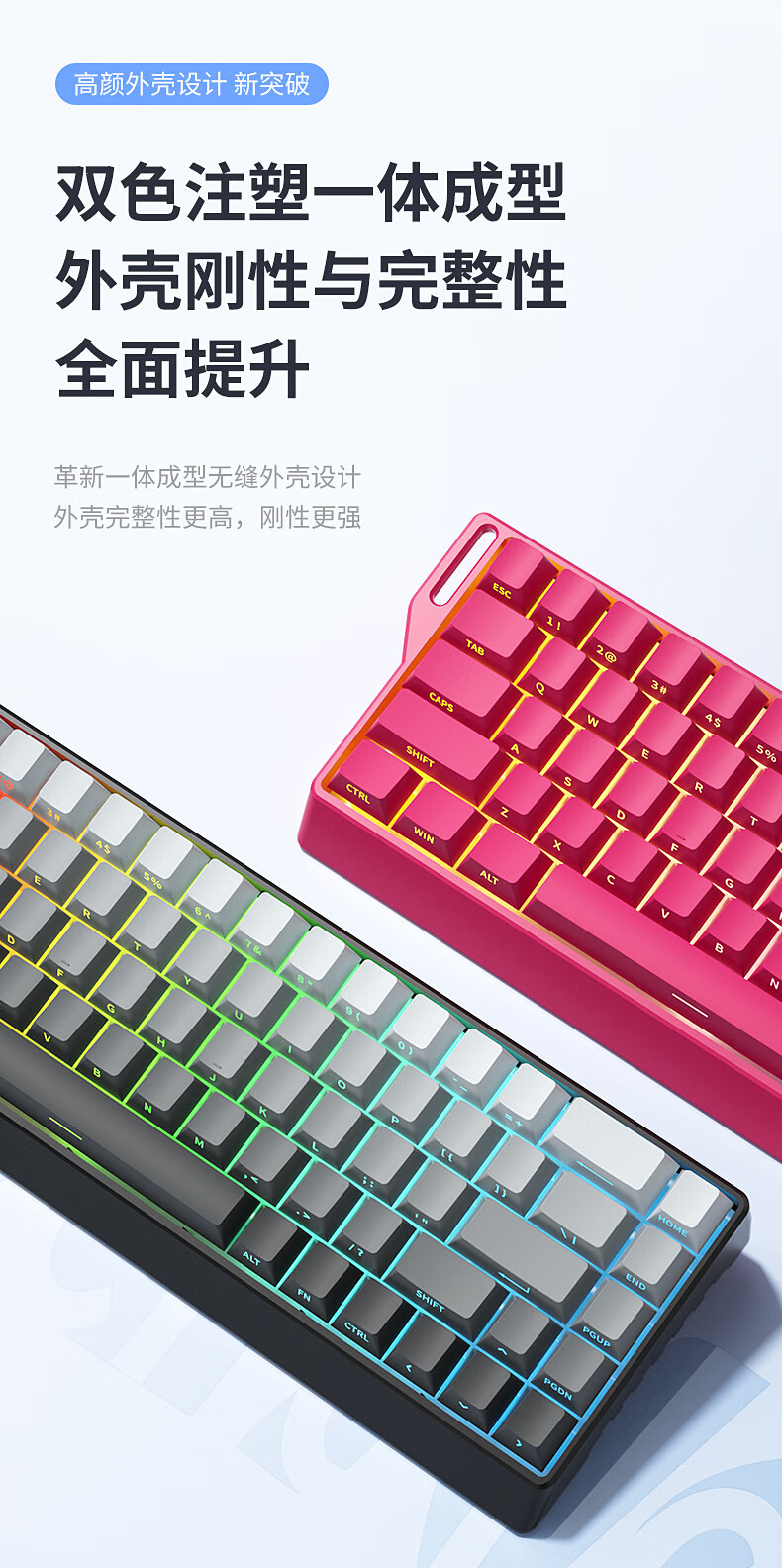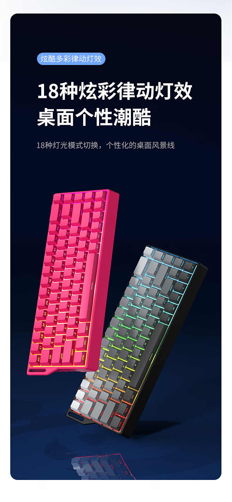 Teclado mecánico de deportes electrónicos FV K68 conexión de tres modos 68 teclas para juegos especiales de teclas completas en caliente intercambiable RGB efecto de luz de color
