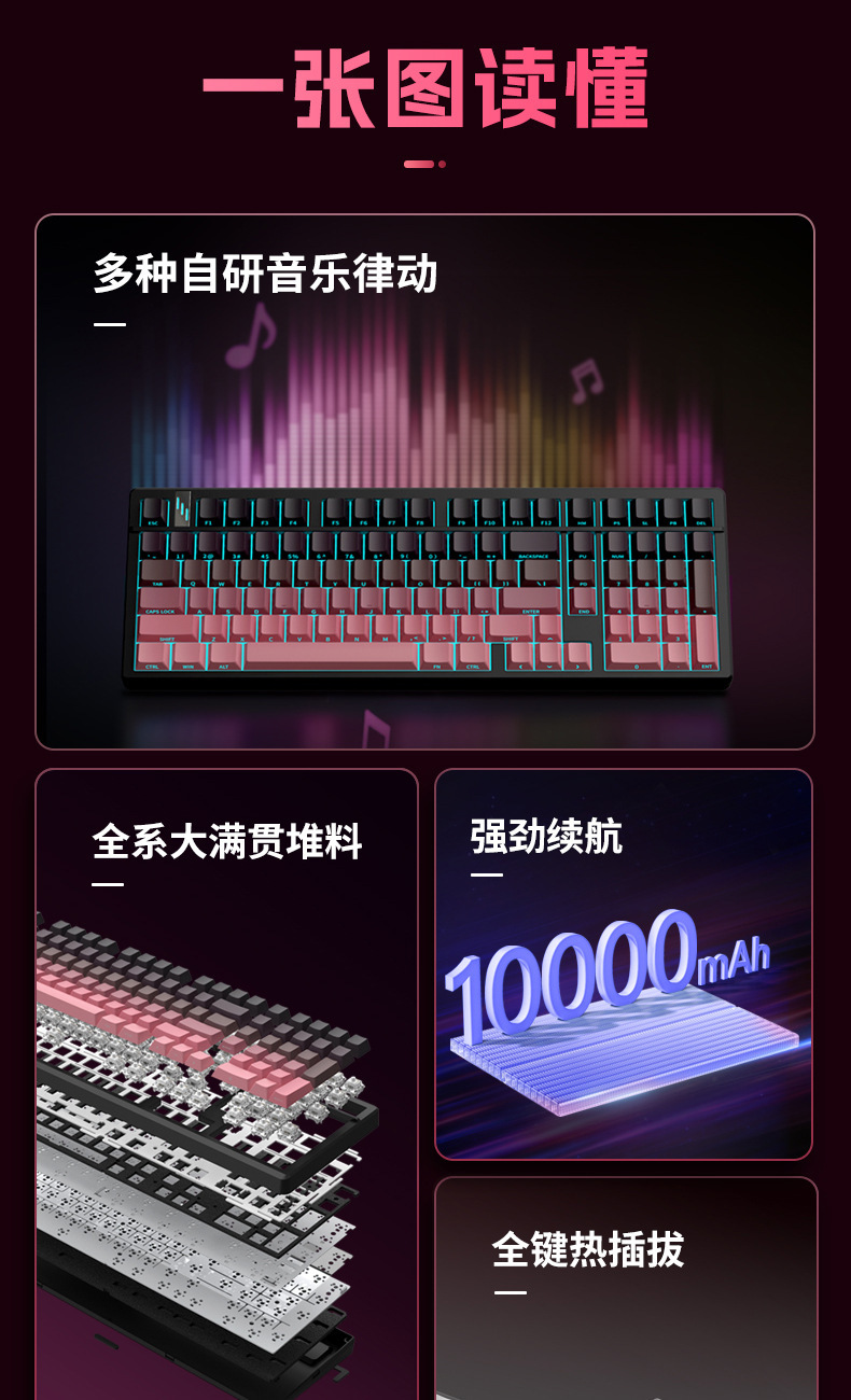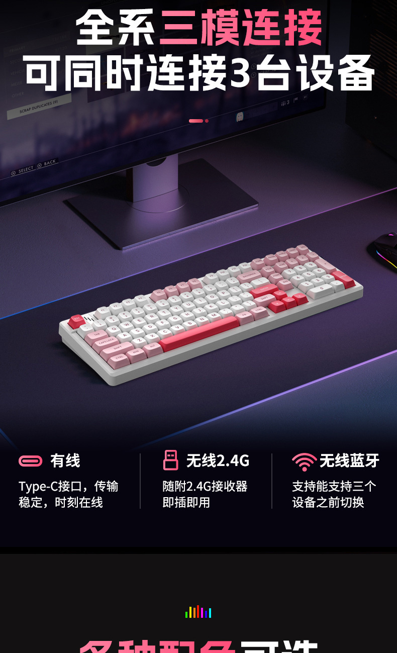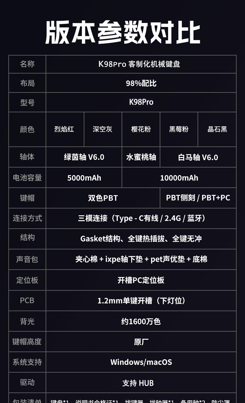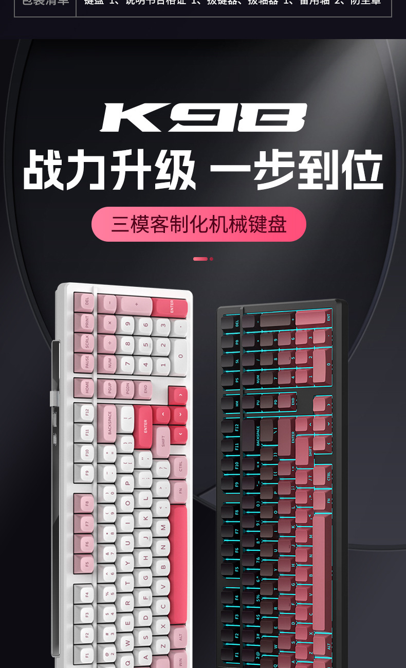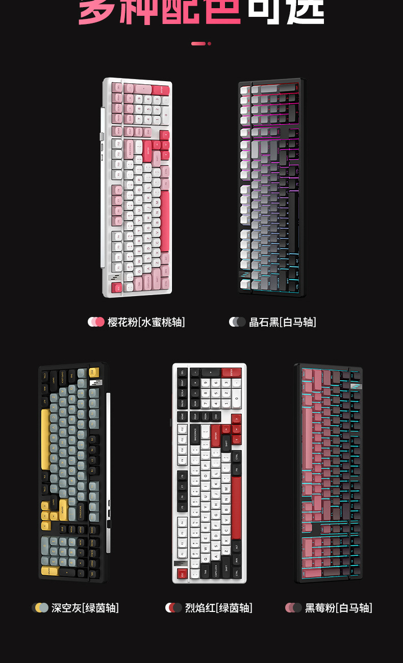 K98PRO eje mecánico RGB teclado mecánico universal eje verde ABS inalámbrico de tres modos impermeable teclado para juegos para juegos