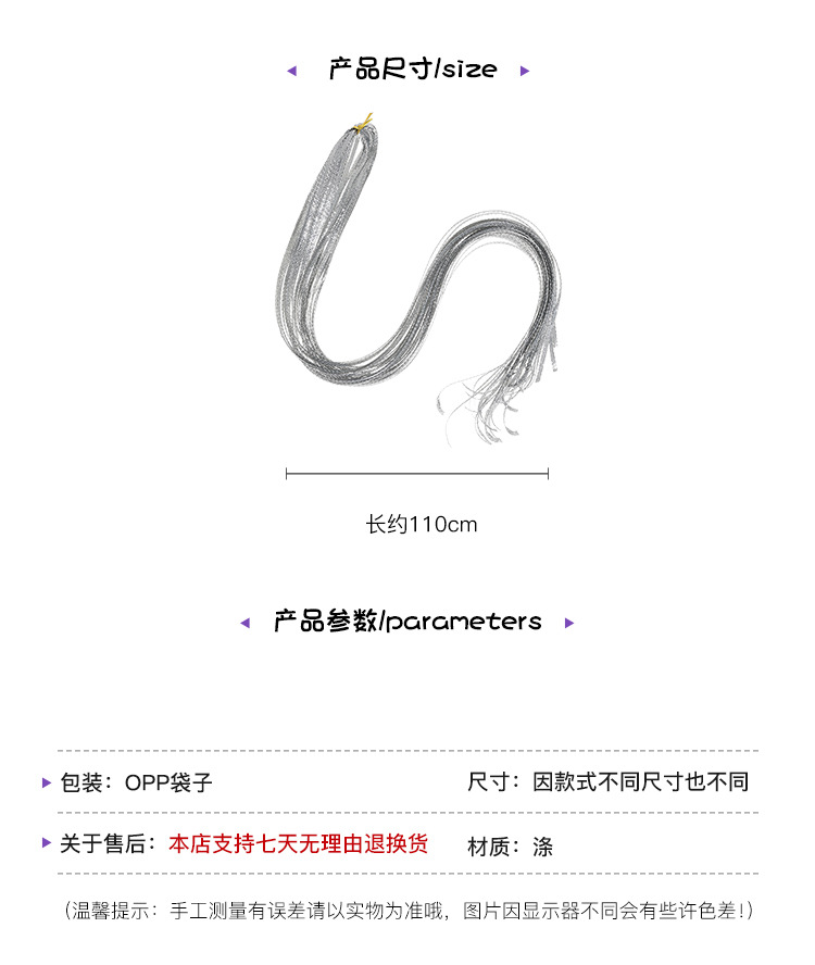 | Color | 1 cuerda de pelo trenzado plateado 20 bolsas (una sola tiene unos 110 cm de largo) |