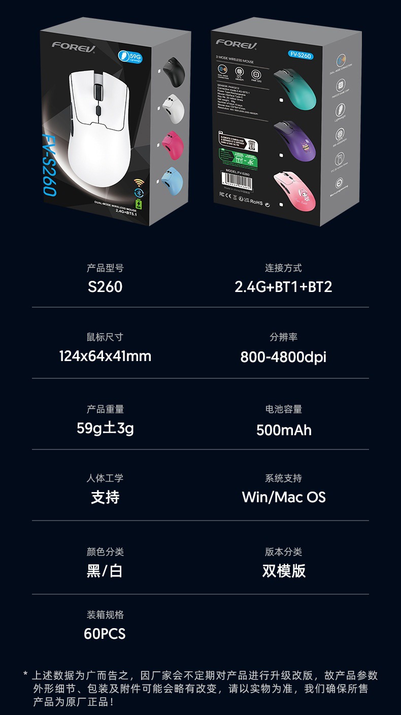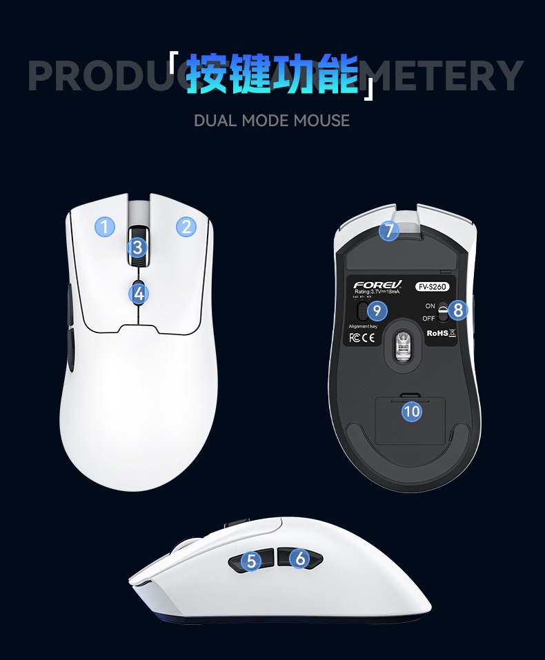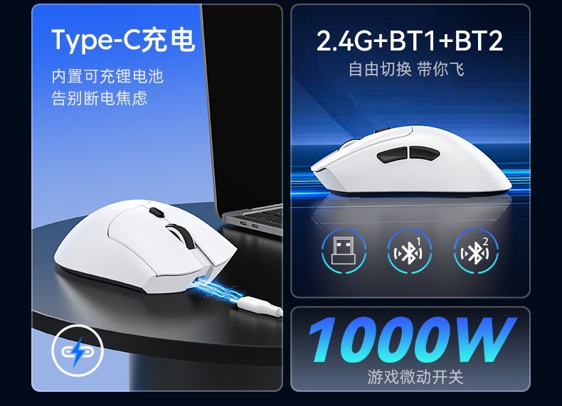 Nuevos productos ligeros transfronterizos de marca conjunta de tres modos Bluetooth silencioso ratón de oficina S260 ratón de juego de carga inalámbrica