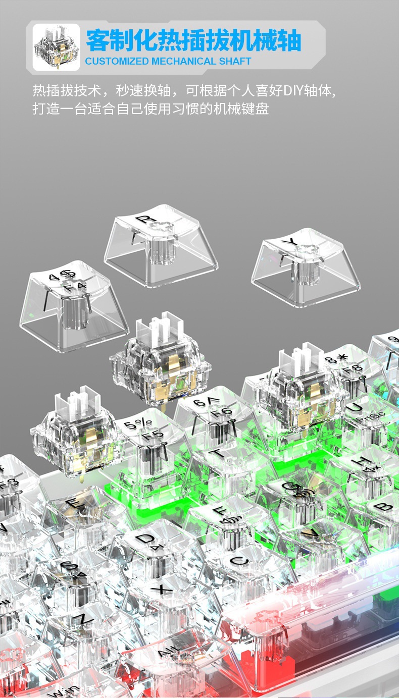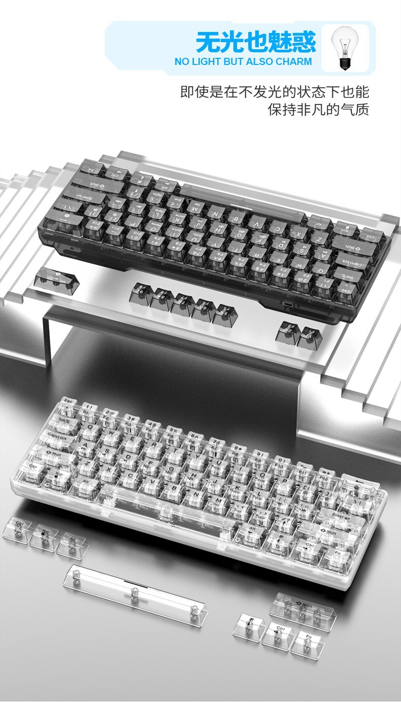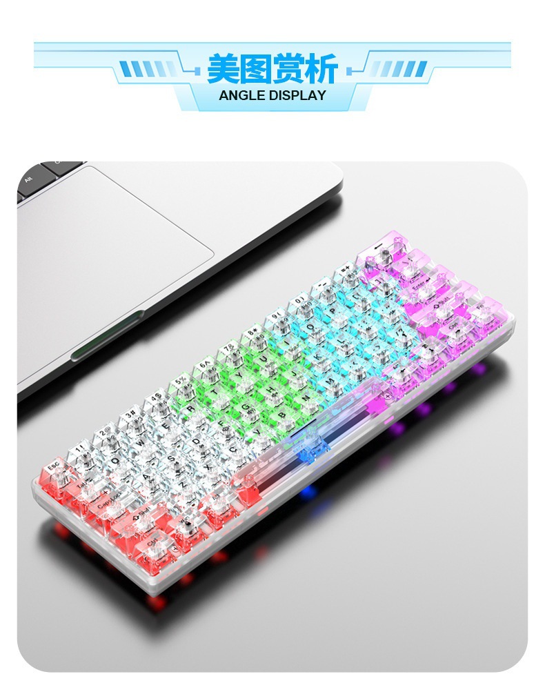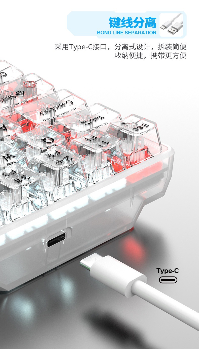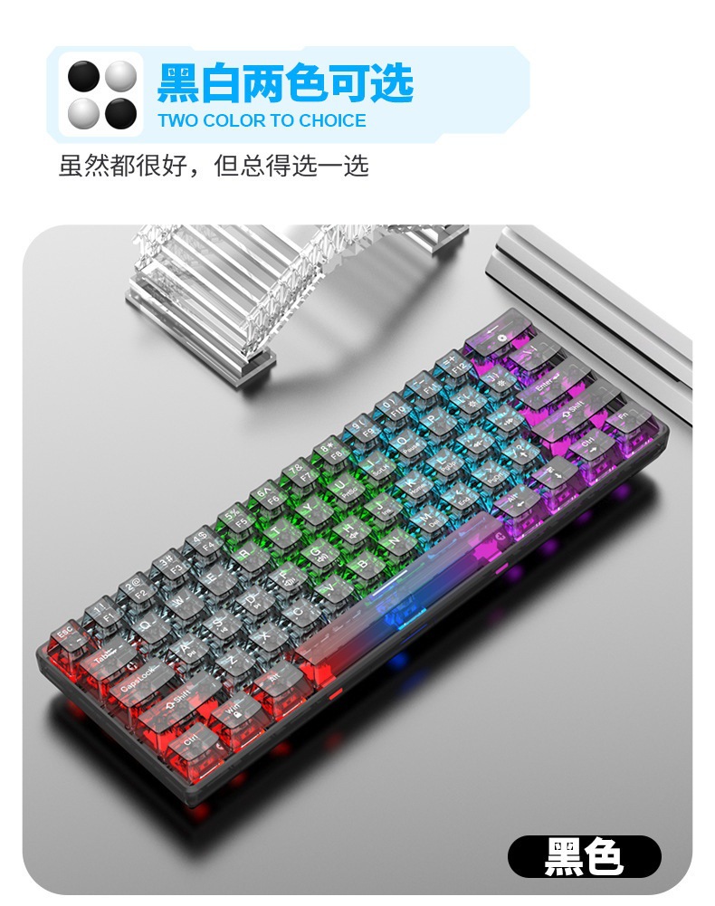 T68 teclado mecánico cableado transparente en caliente intercambiable personalizado juego de oficina luminoso mini transfronterizo