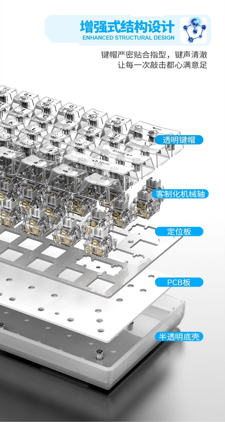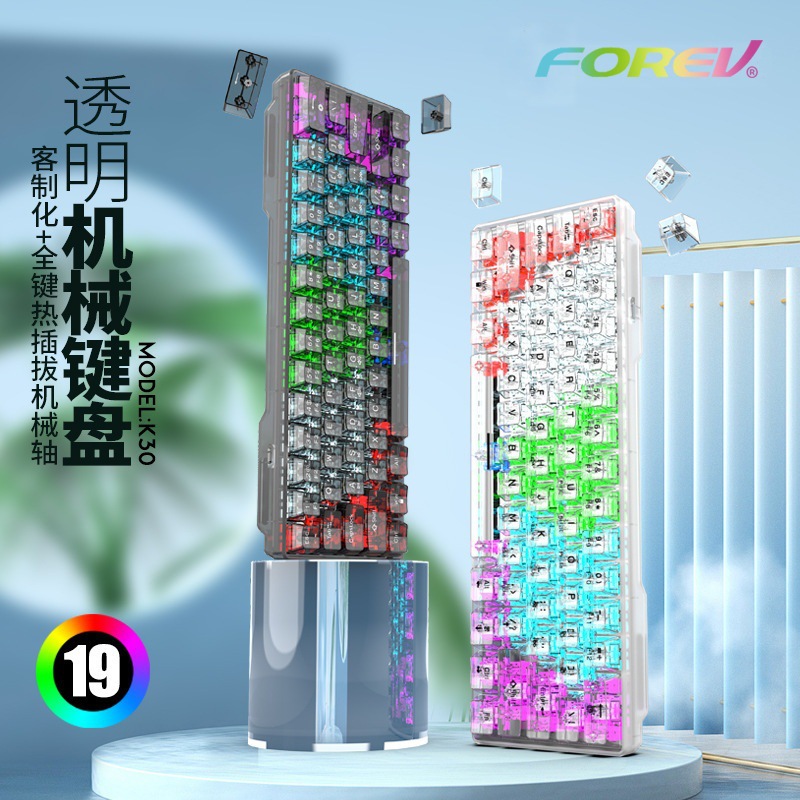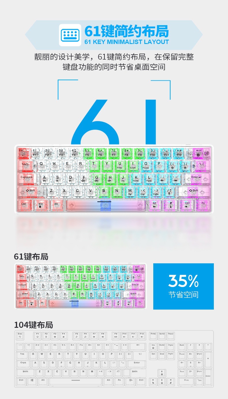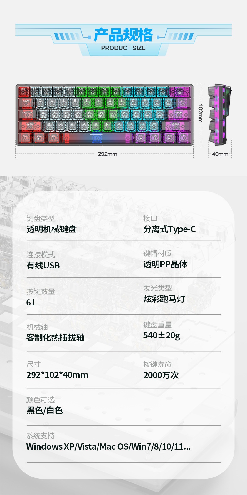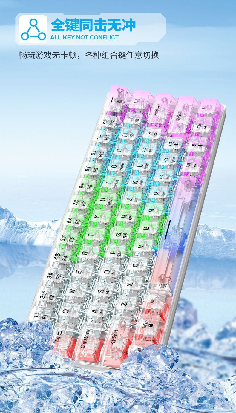 T68 teclado mecánico cableado transparente en caliente intercambiable personalizado juego de oficina luminoso mini transfronterizo