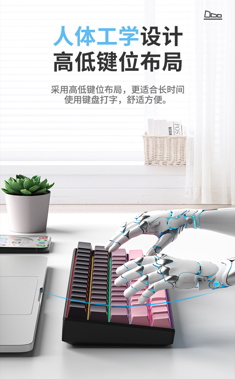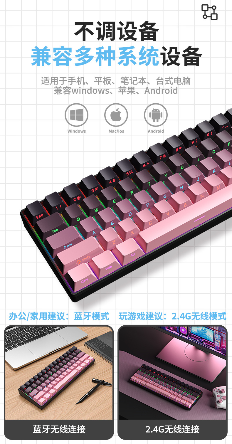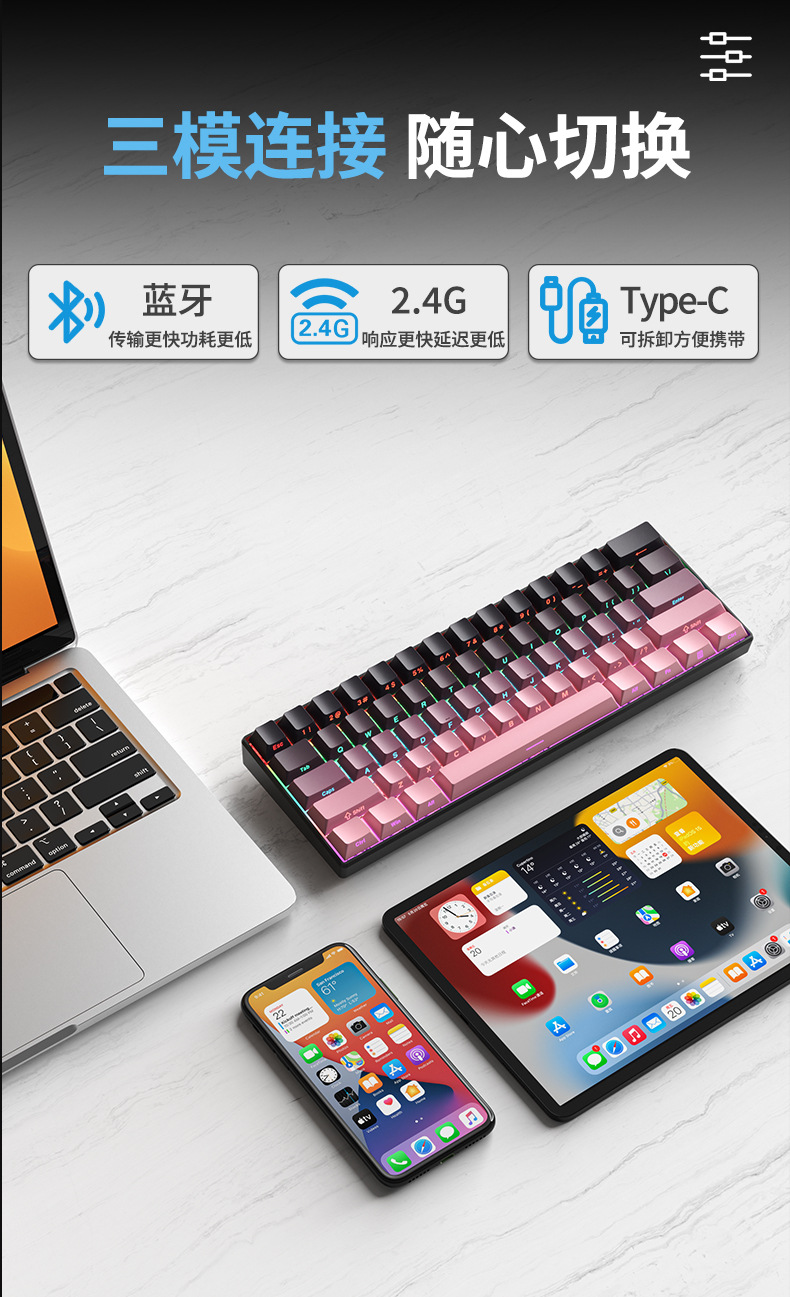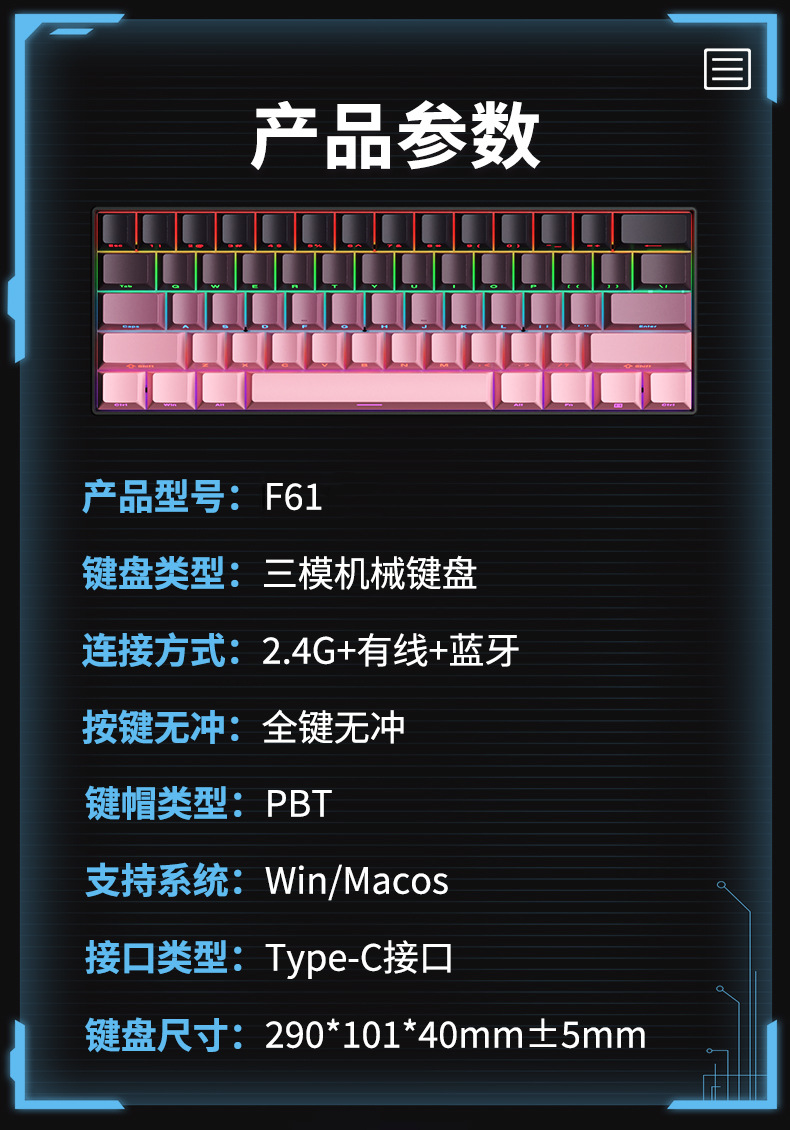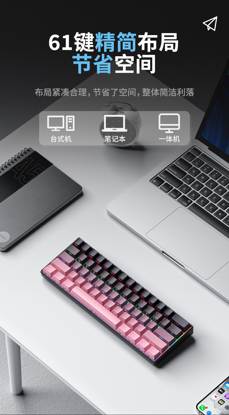 F61Pro tres modos teclado mecánico 61 teclas luces RGB teclado portátil de oficina