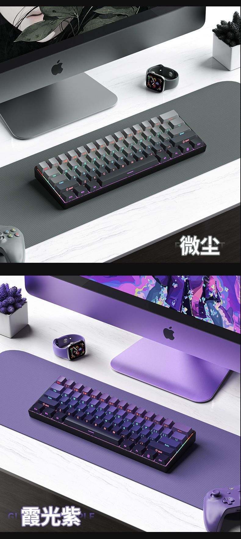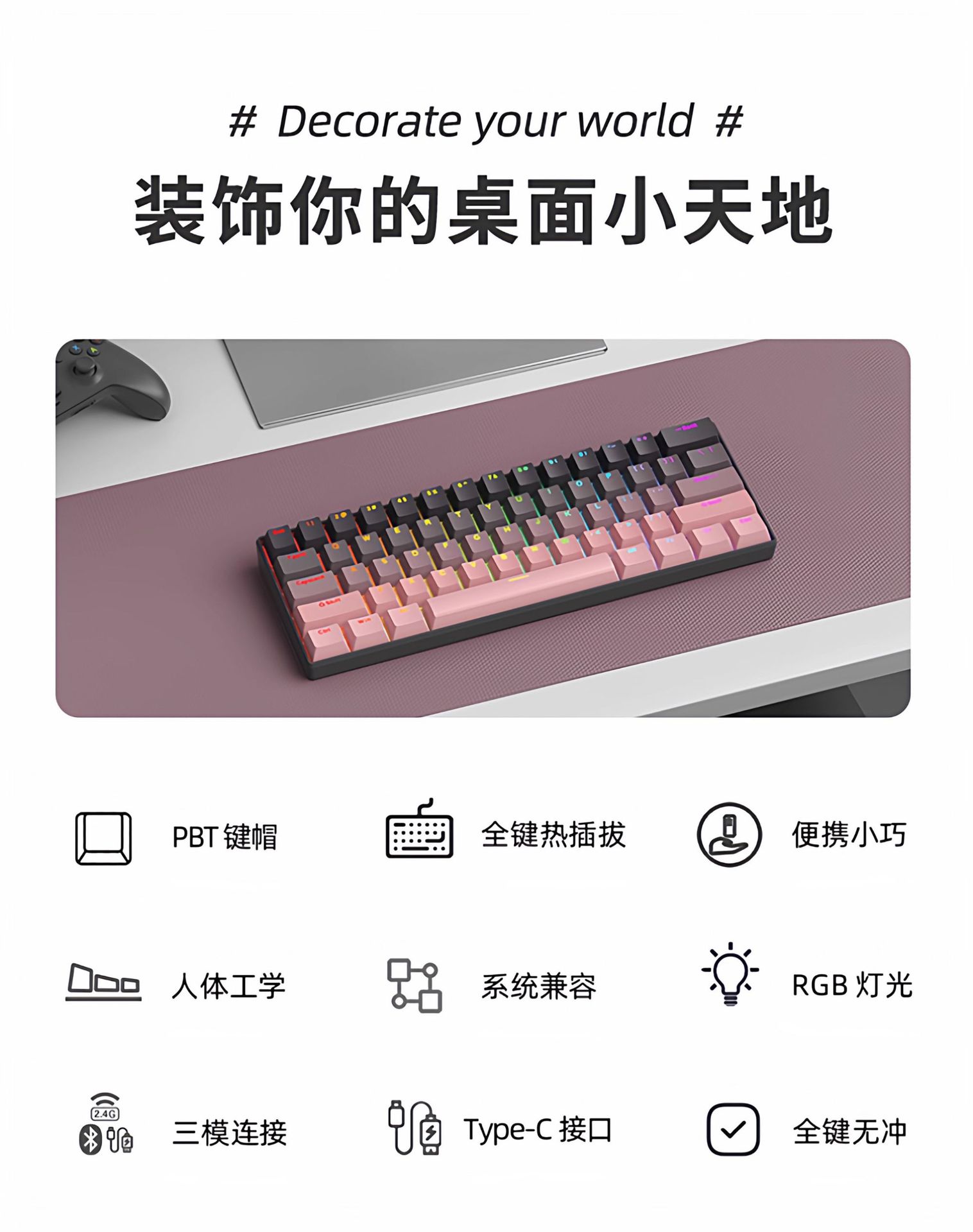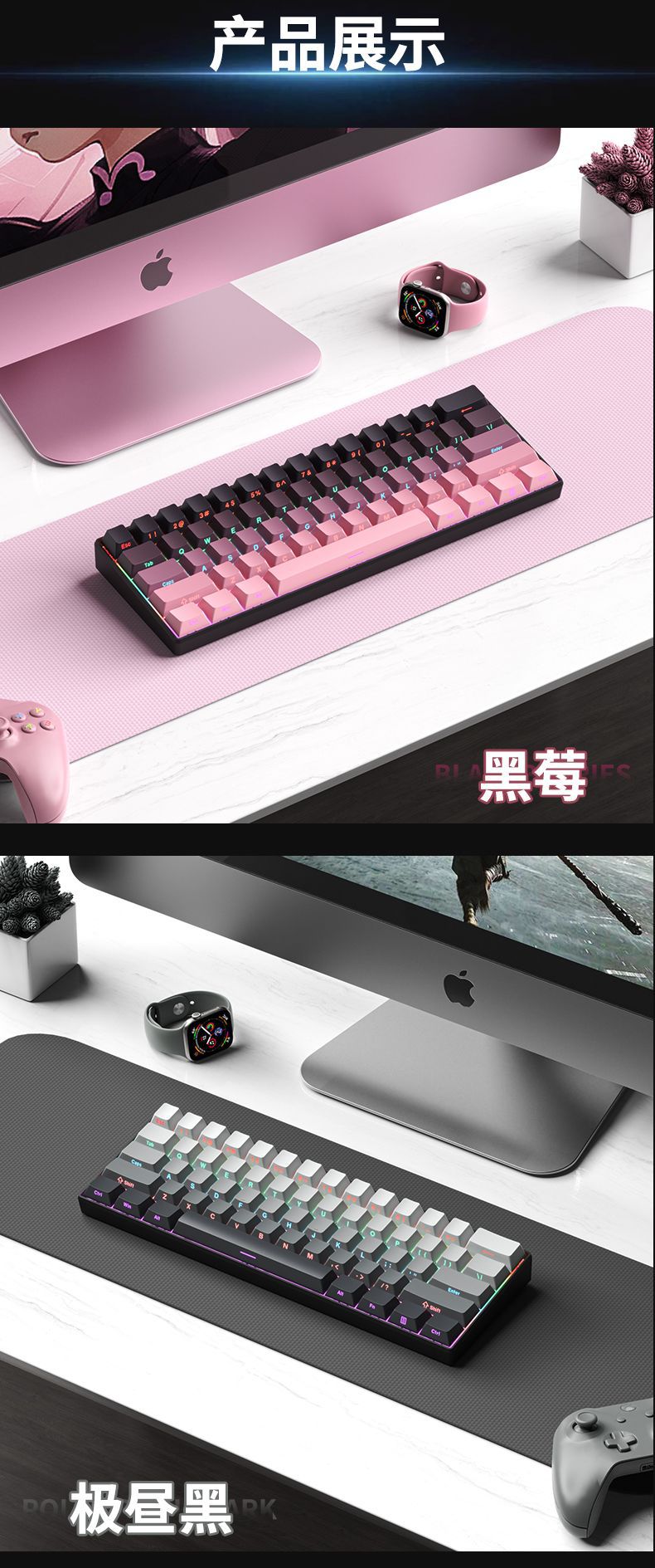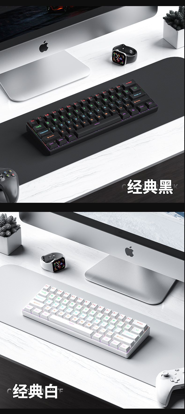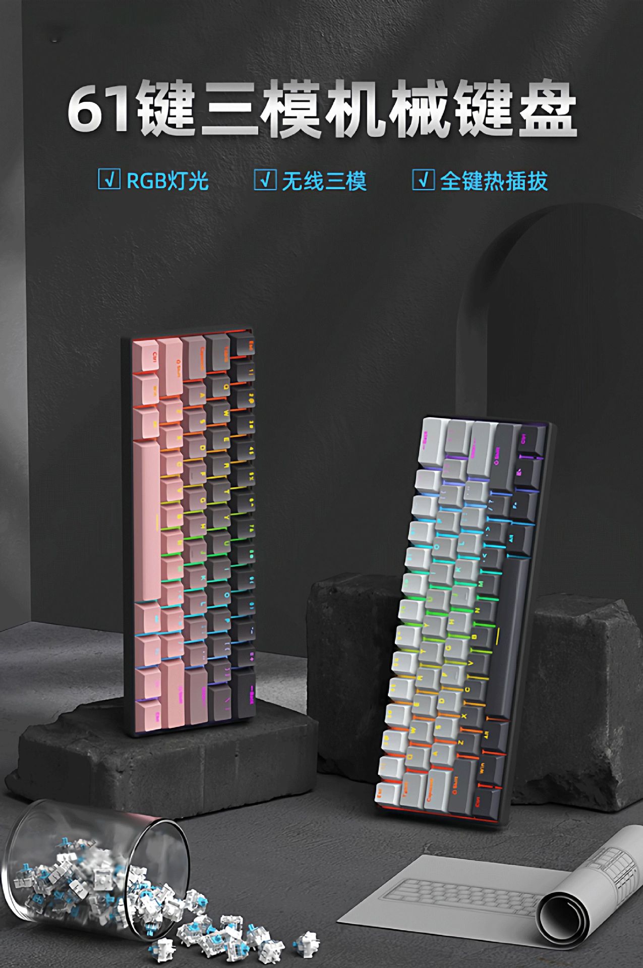 F61Pro tres modos teclado mecánico 61 teclas luces RGB teclado portátil de oficina