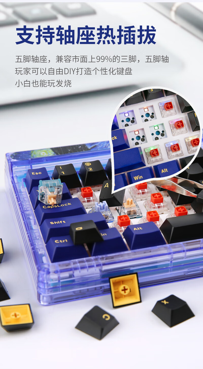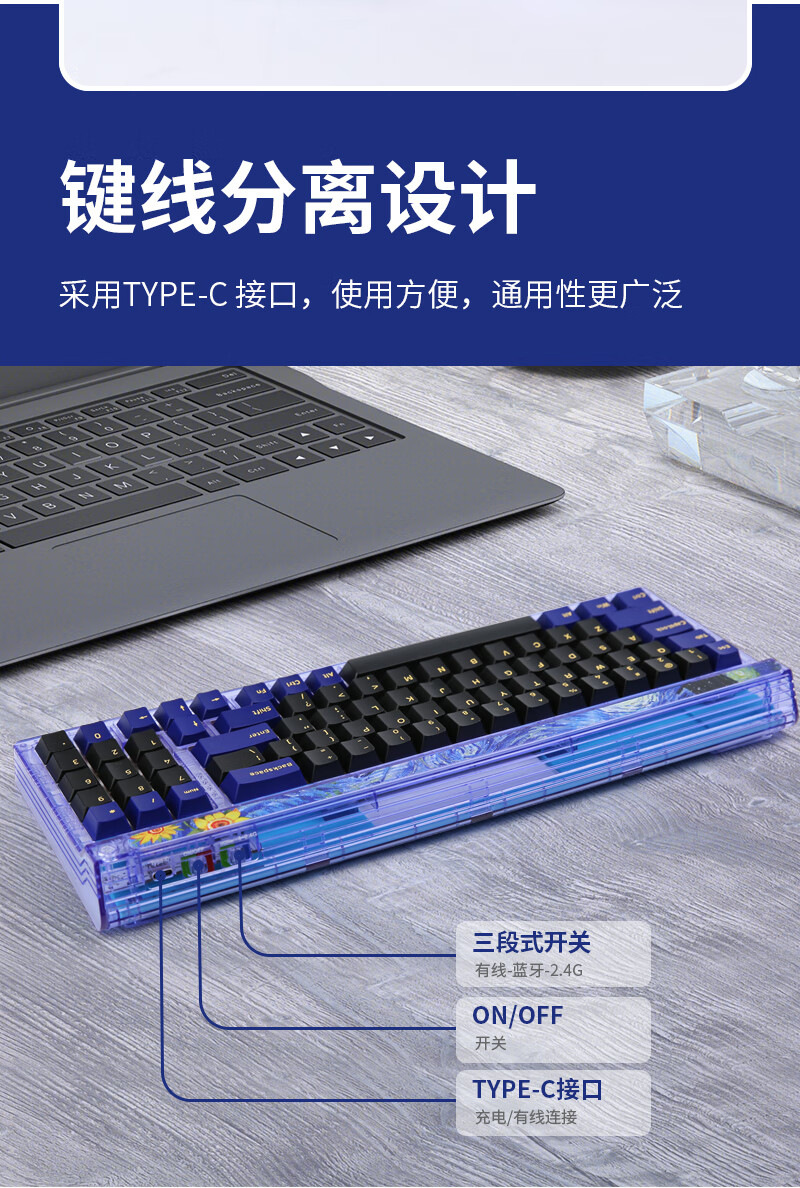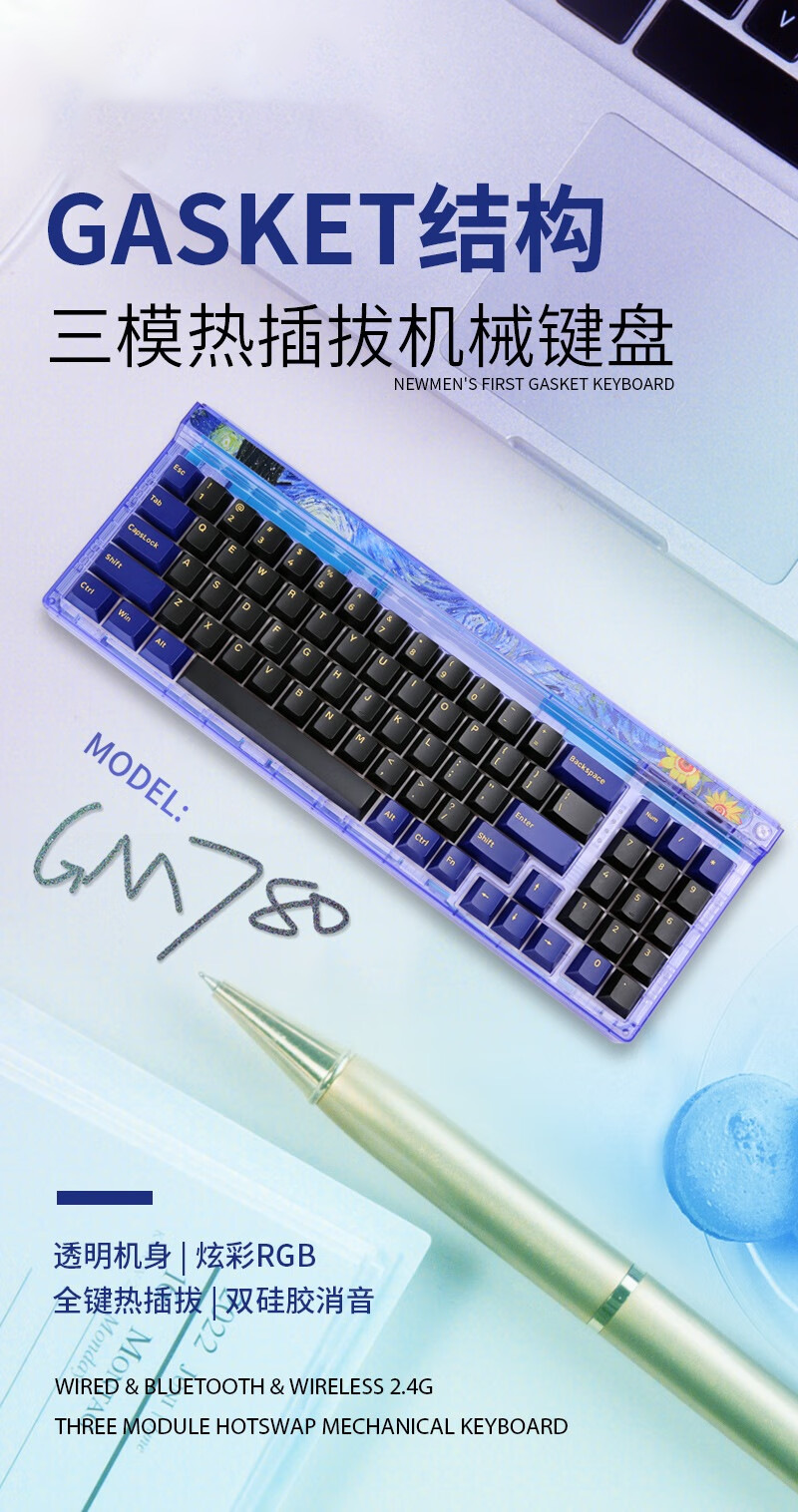 GM780 teclado mecánico de tres modos de cinco pines en caliente 75 arreglos estructura de junta transparente teclado personalizado