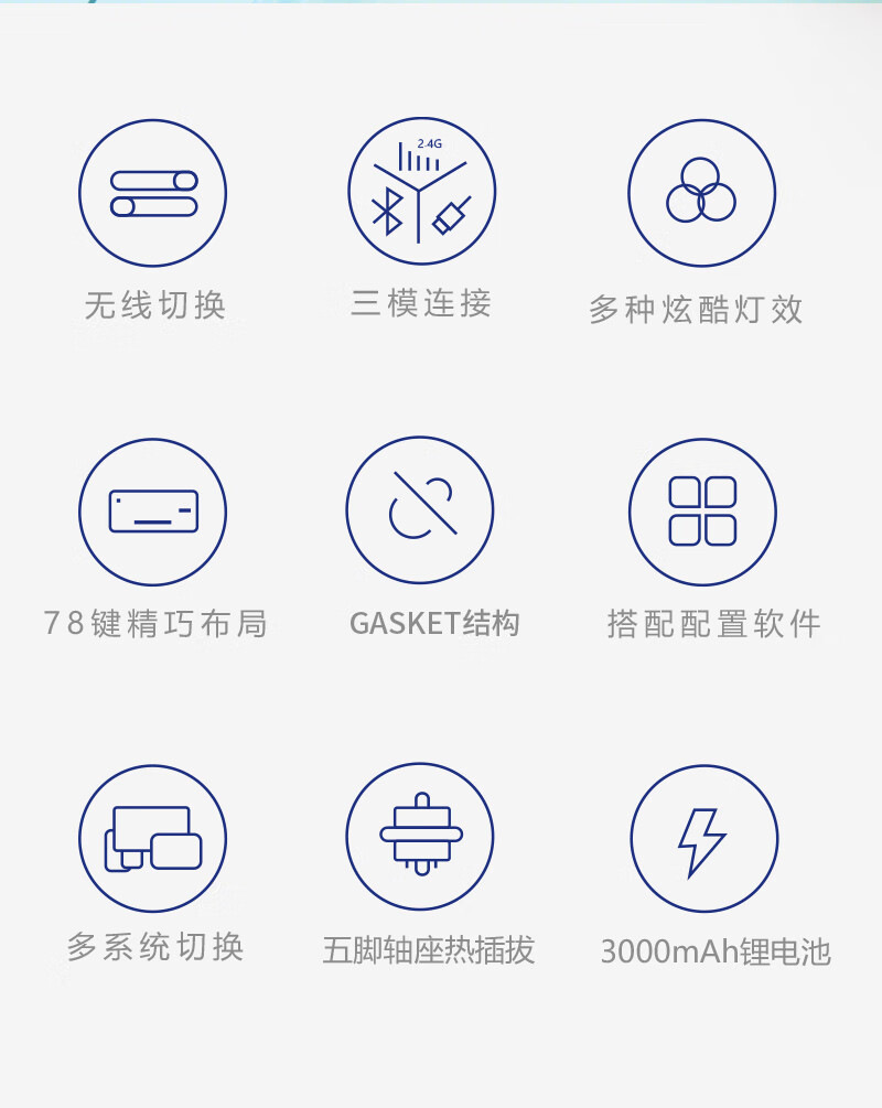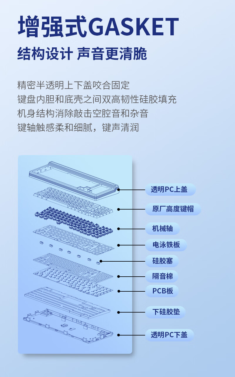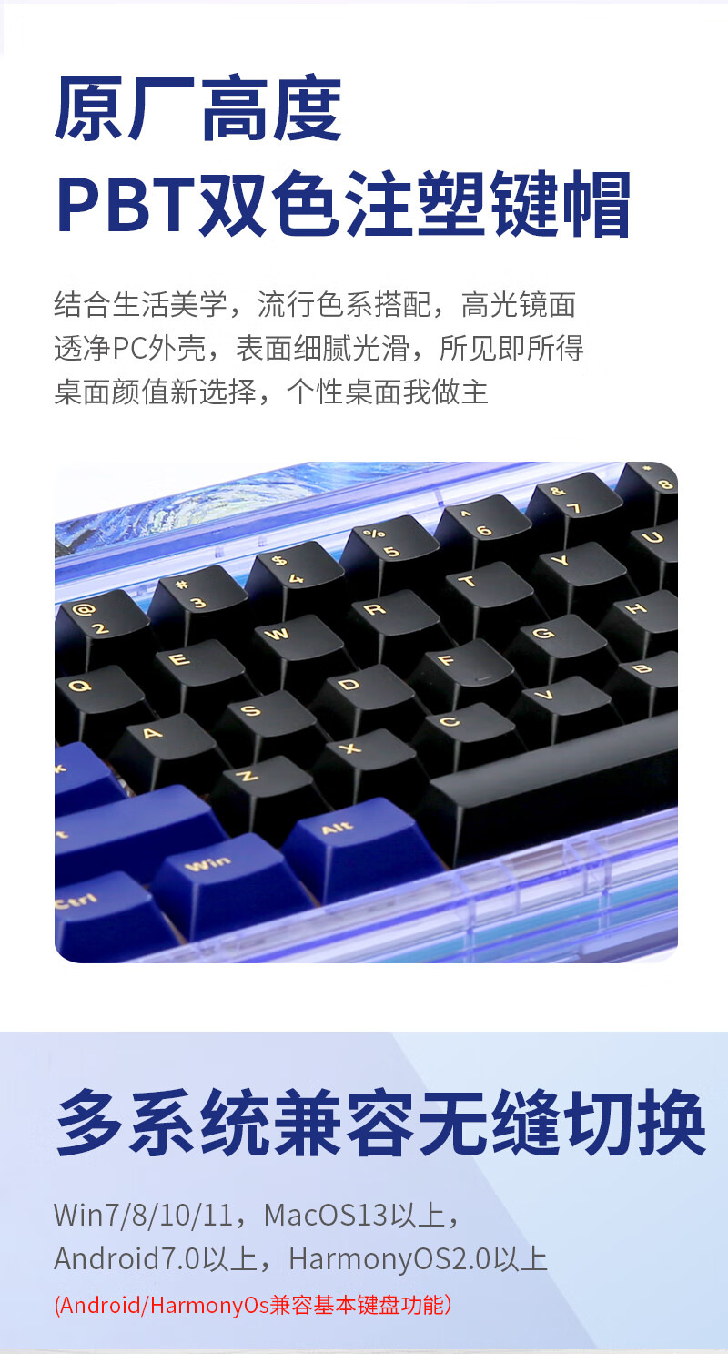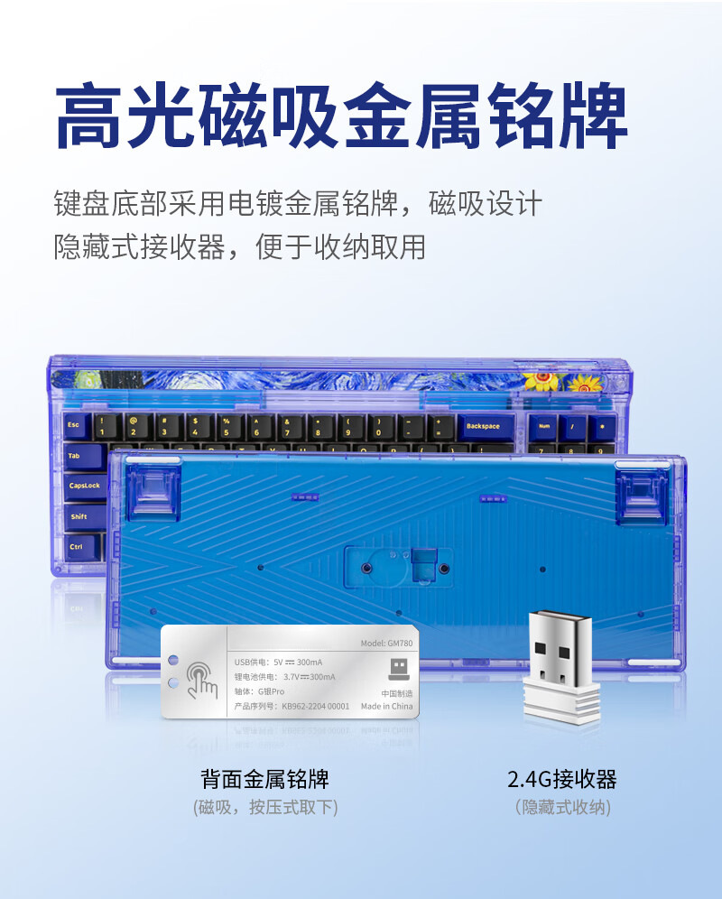 GM780 teclado mecánico de tres modos de cinco pines en caliente 75 arreglos estructura de junta transparente teclado personalizado