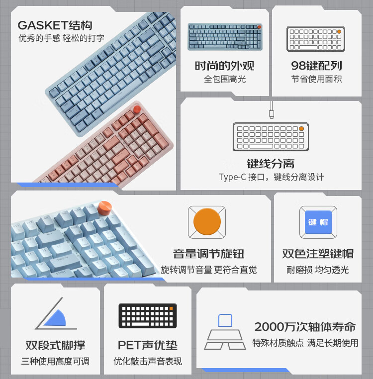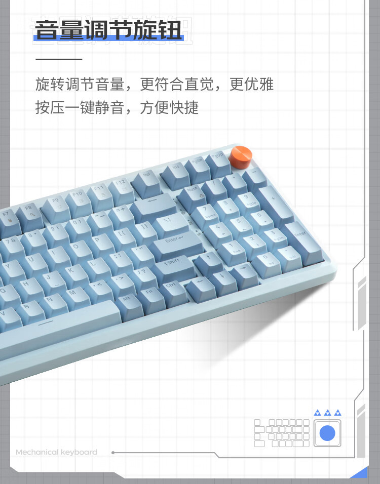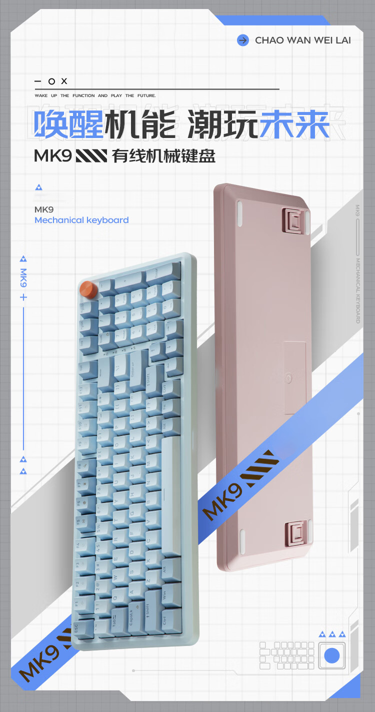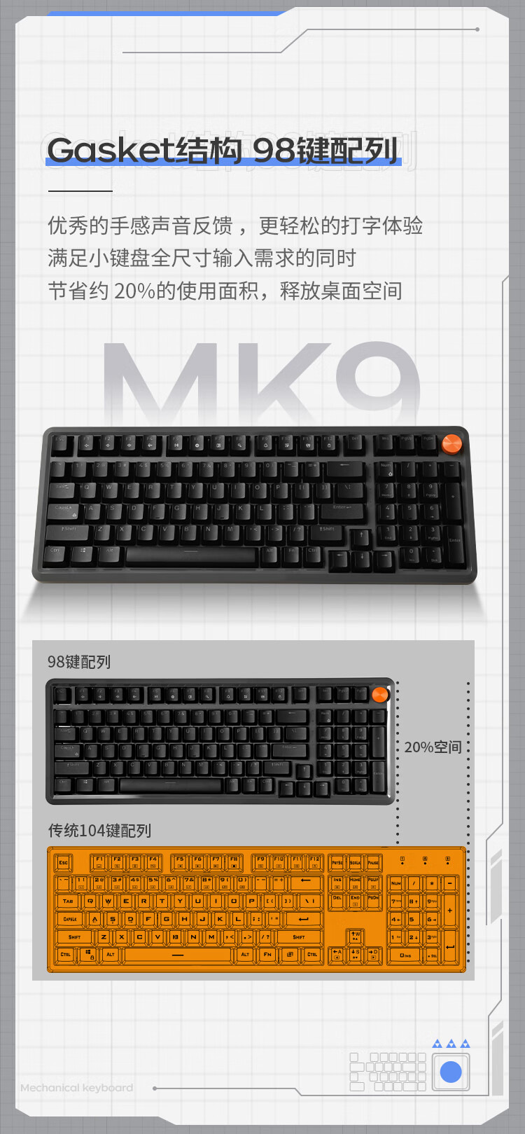 MK9 teclado mecánico teclado de juegos cableado estructura GASKET98 matriz de perilla de volumen de luz única separación de cable de tecla