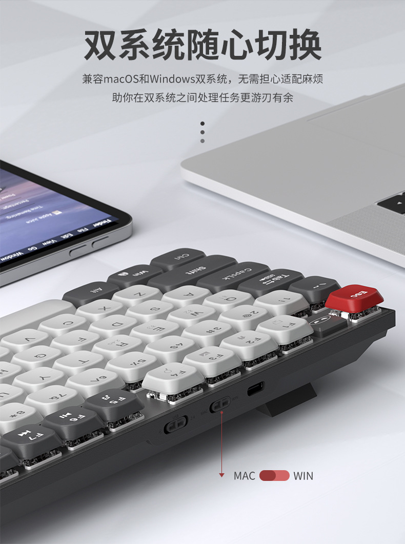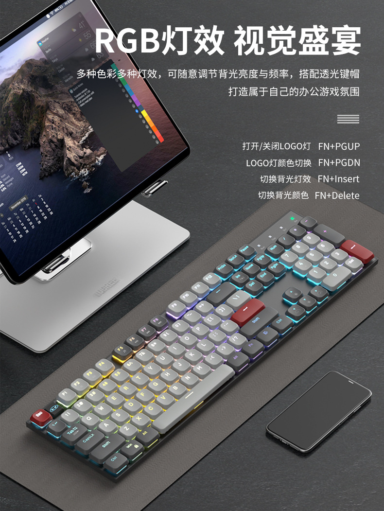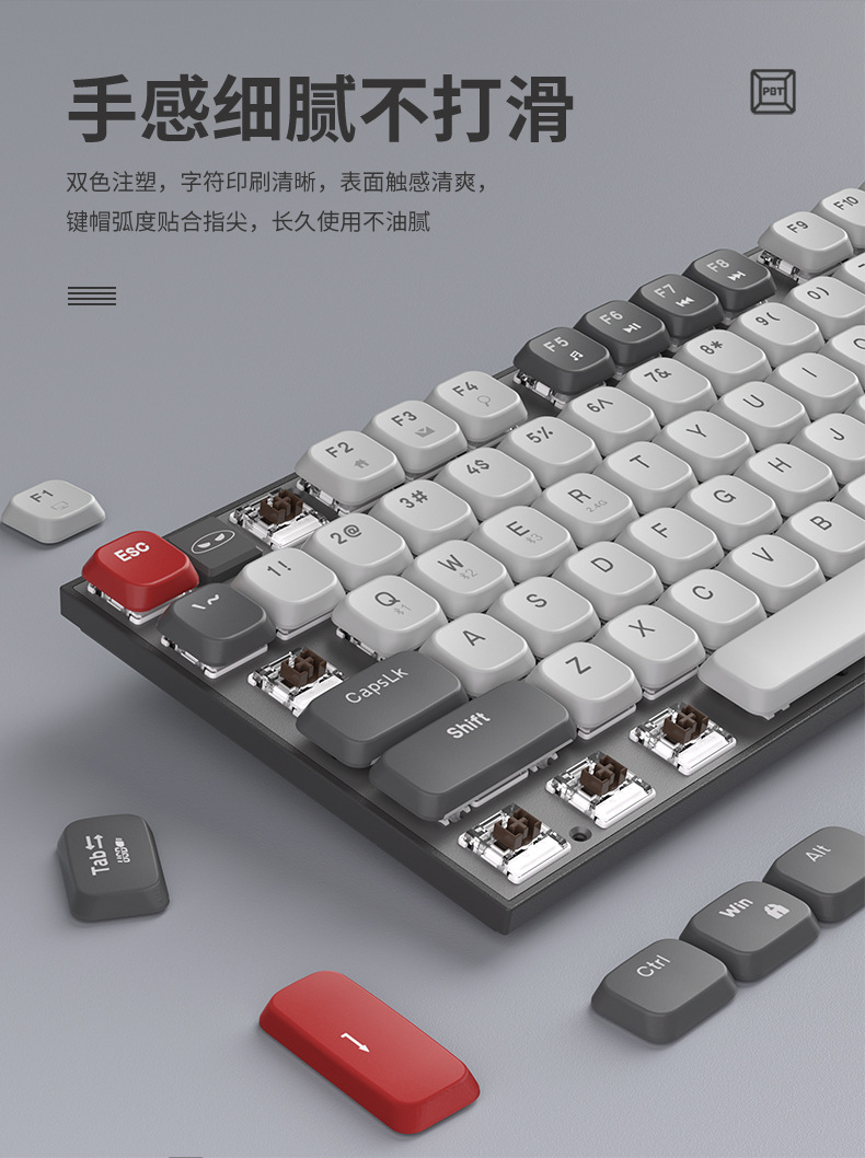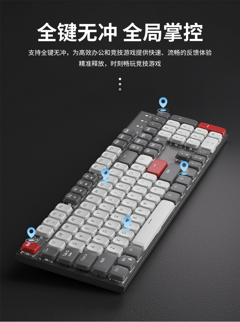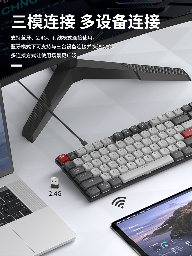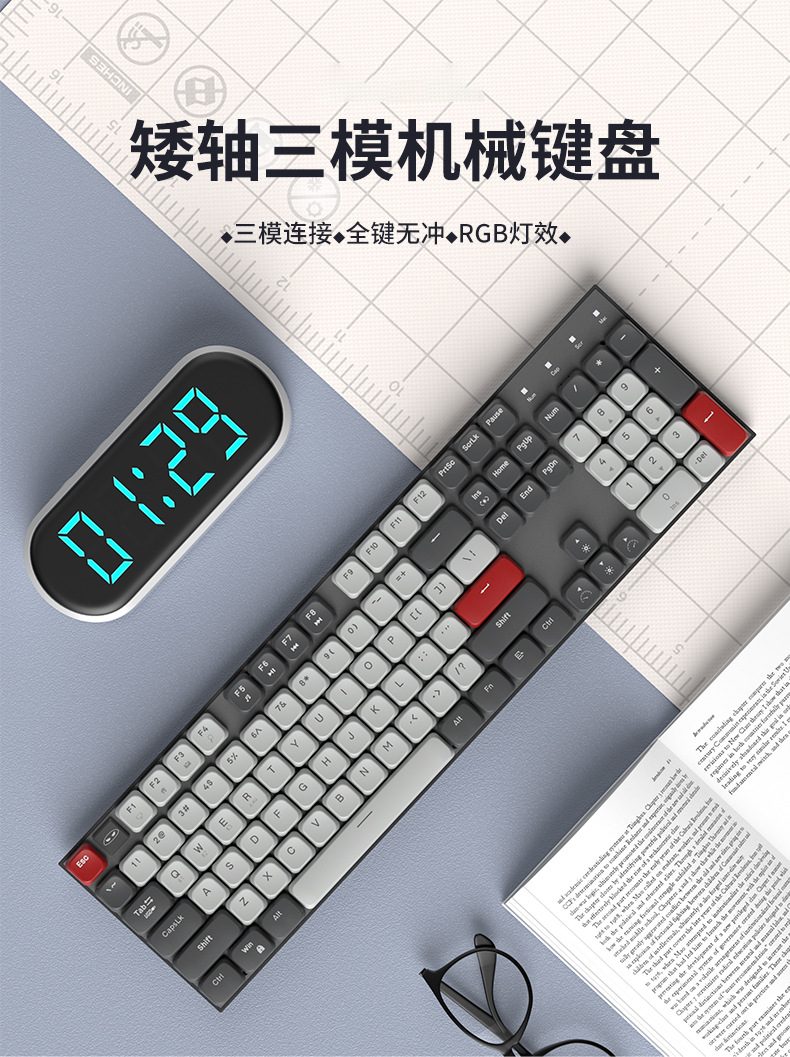 Teclado mecánico eje rojo corto silencioso escritorio de escritura de tres modos de conexión de computadora portátil de deportes electrónicos ultra delgados teclas completas sin impacto