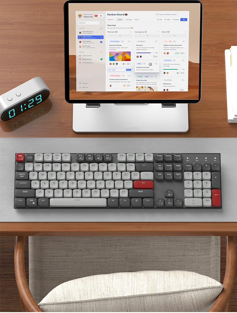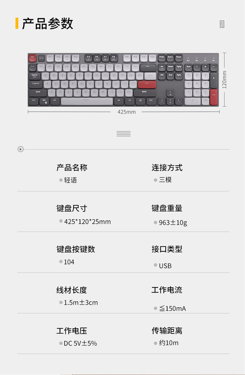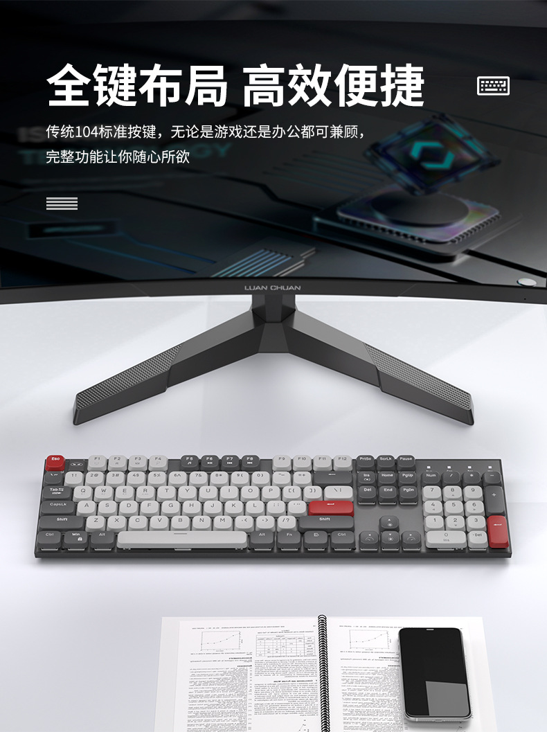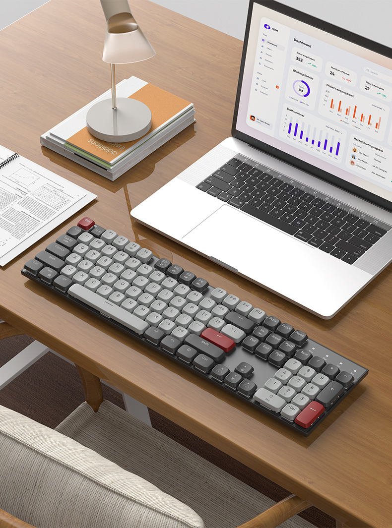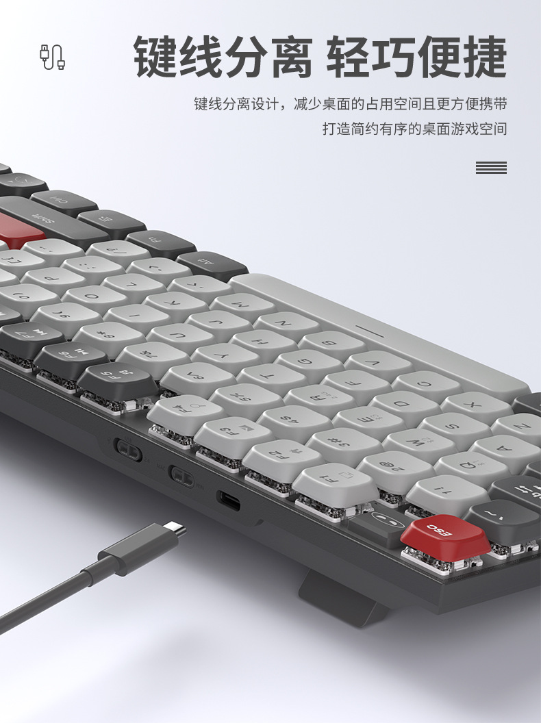 Teclado mecánico eje rojo corto silencioso escritorio de escritura de tres modos de conexión de computadora portátil de deportes electrónicos ultra delgados teclas completas sin impacto
