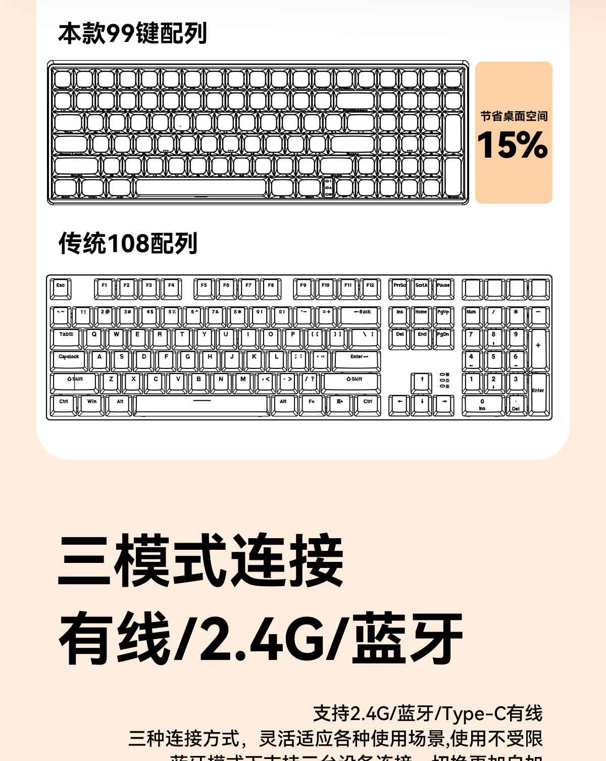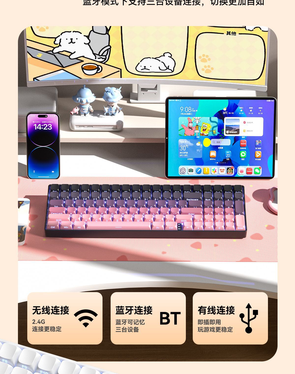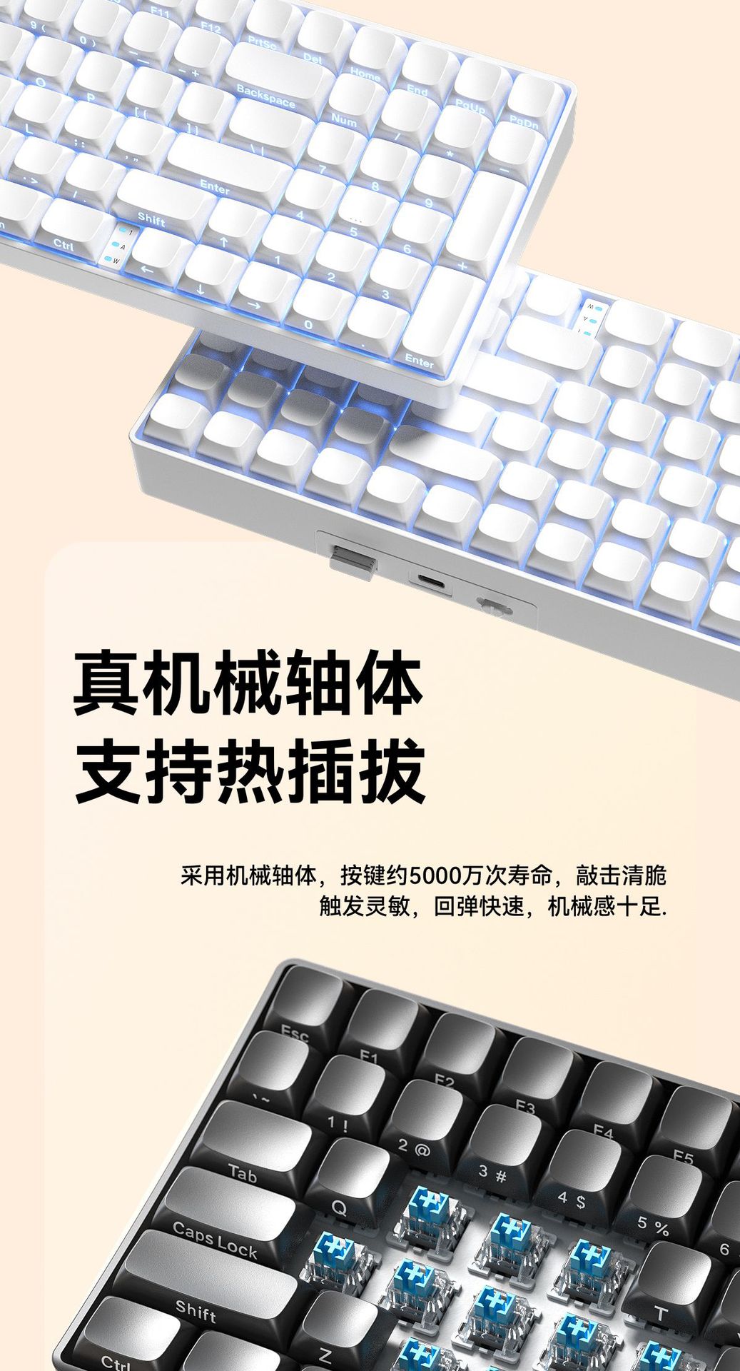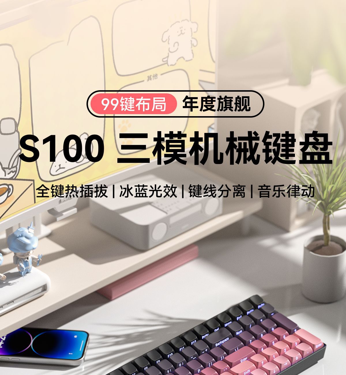 S100 tres modos de conexión teclado mecánico de juegos de deportes electrónicos de oficina tecla completa en caliente tecla de cable de separación de teclas 99