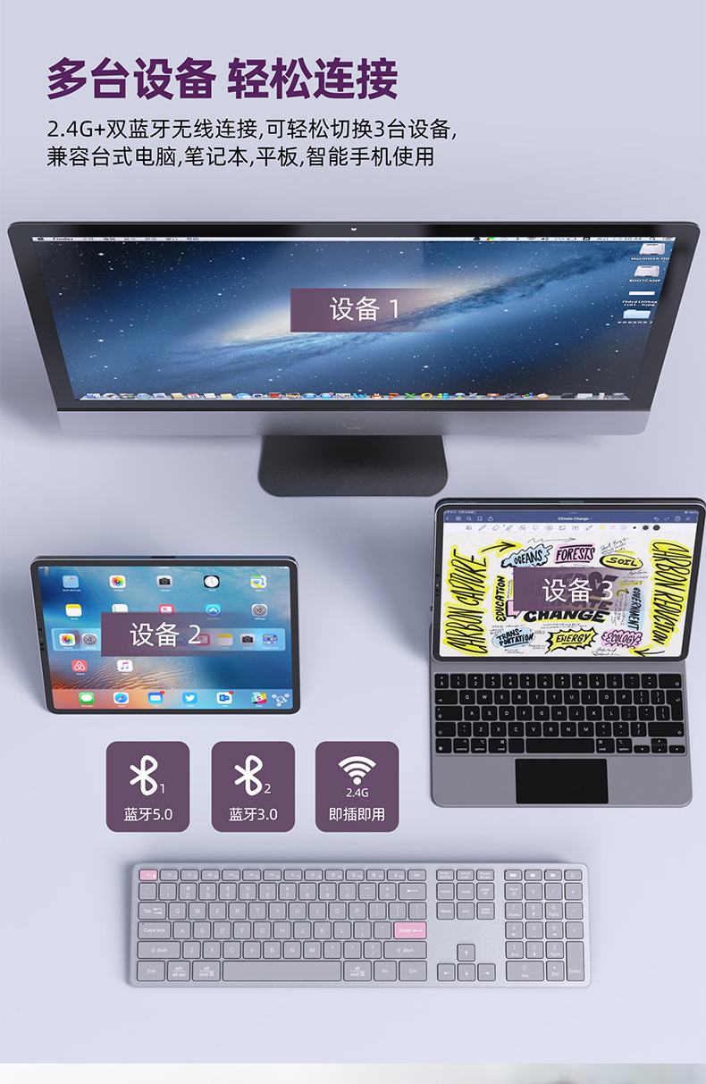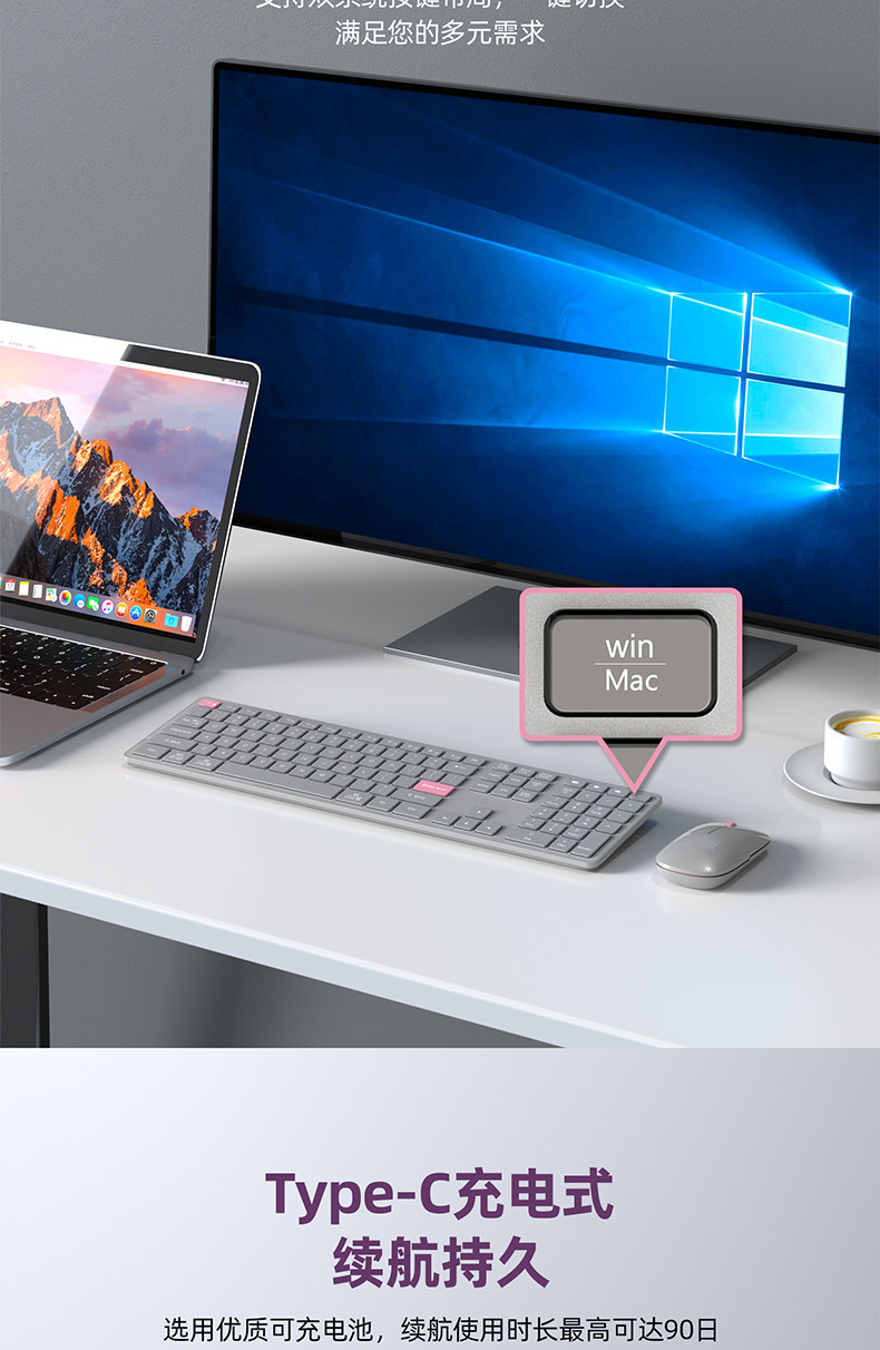 K - 310W tres modos teclado inalámbrico computadora portátil oficina externa carga silenciosa ergonómica de alto valor