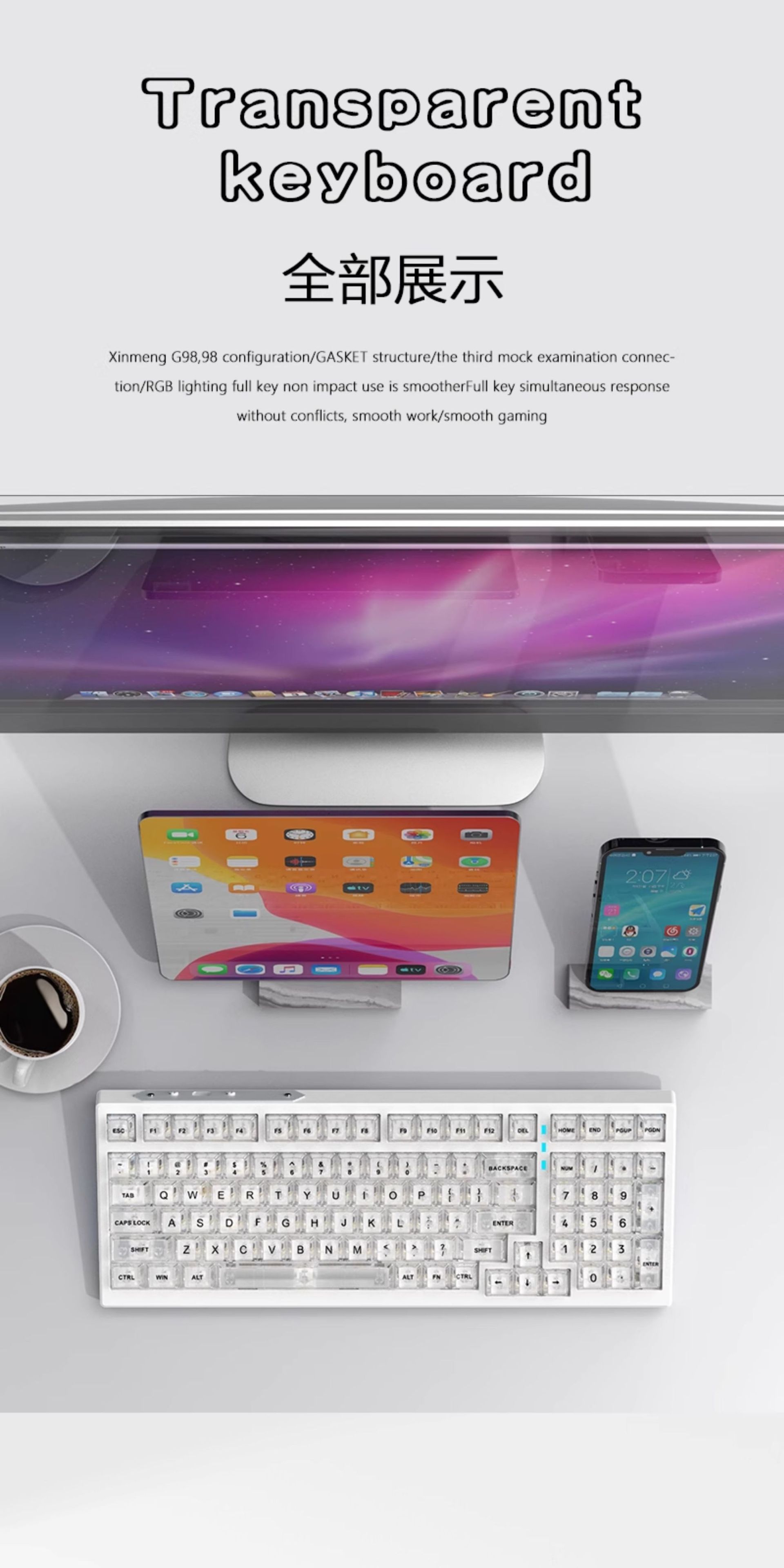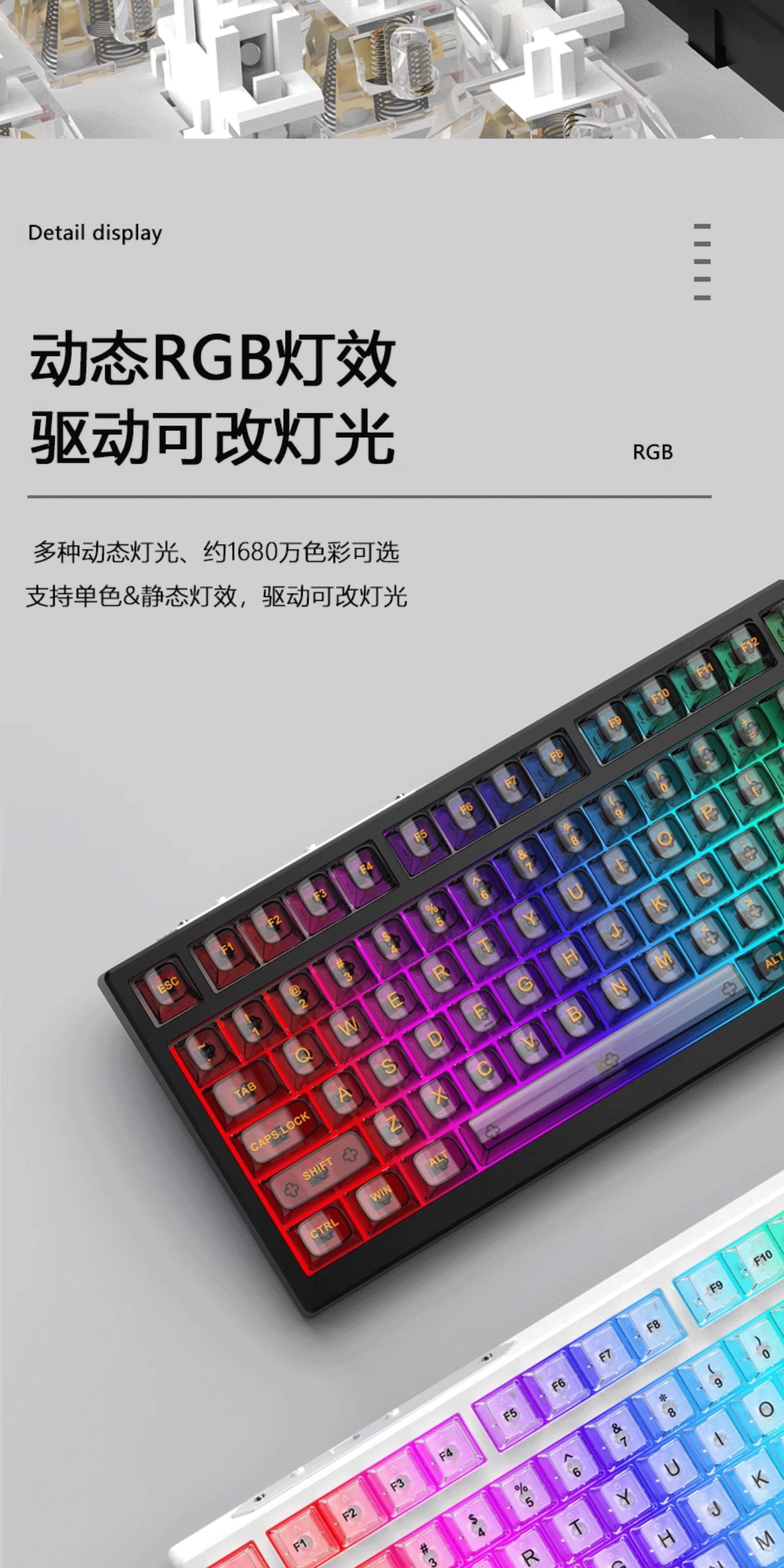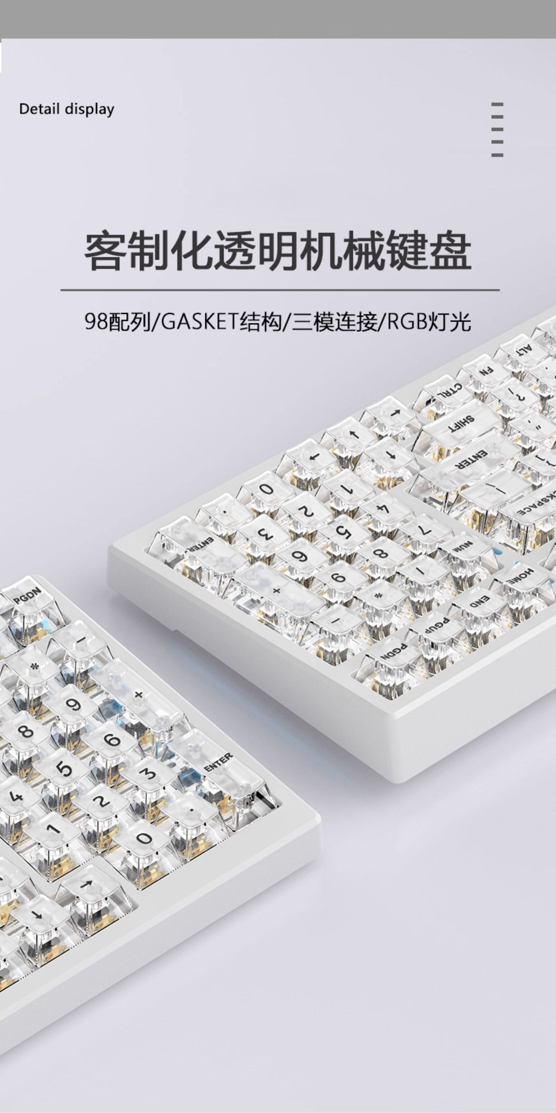 G98 teclado mecánico transparente tres modos RGB en caliente eje enchufable junta teclado personalizado
