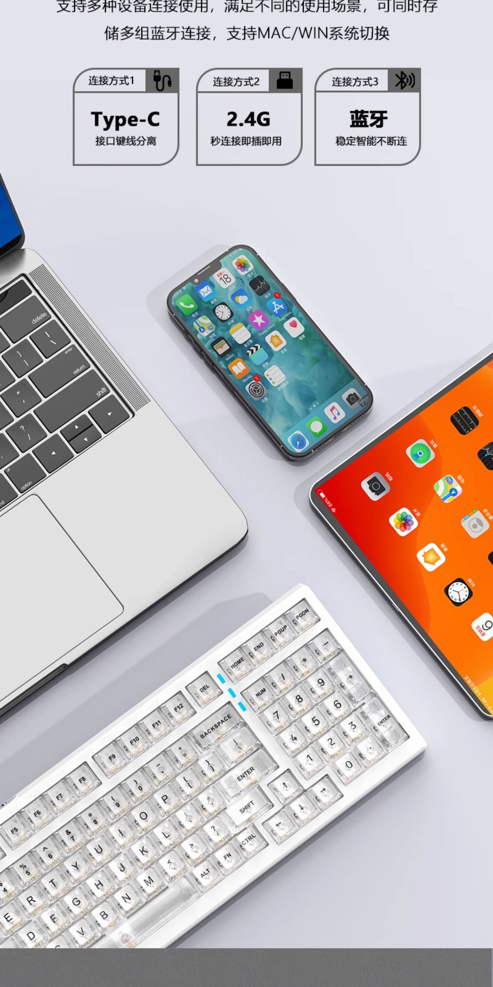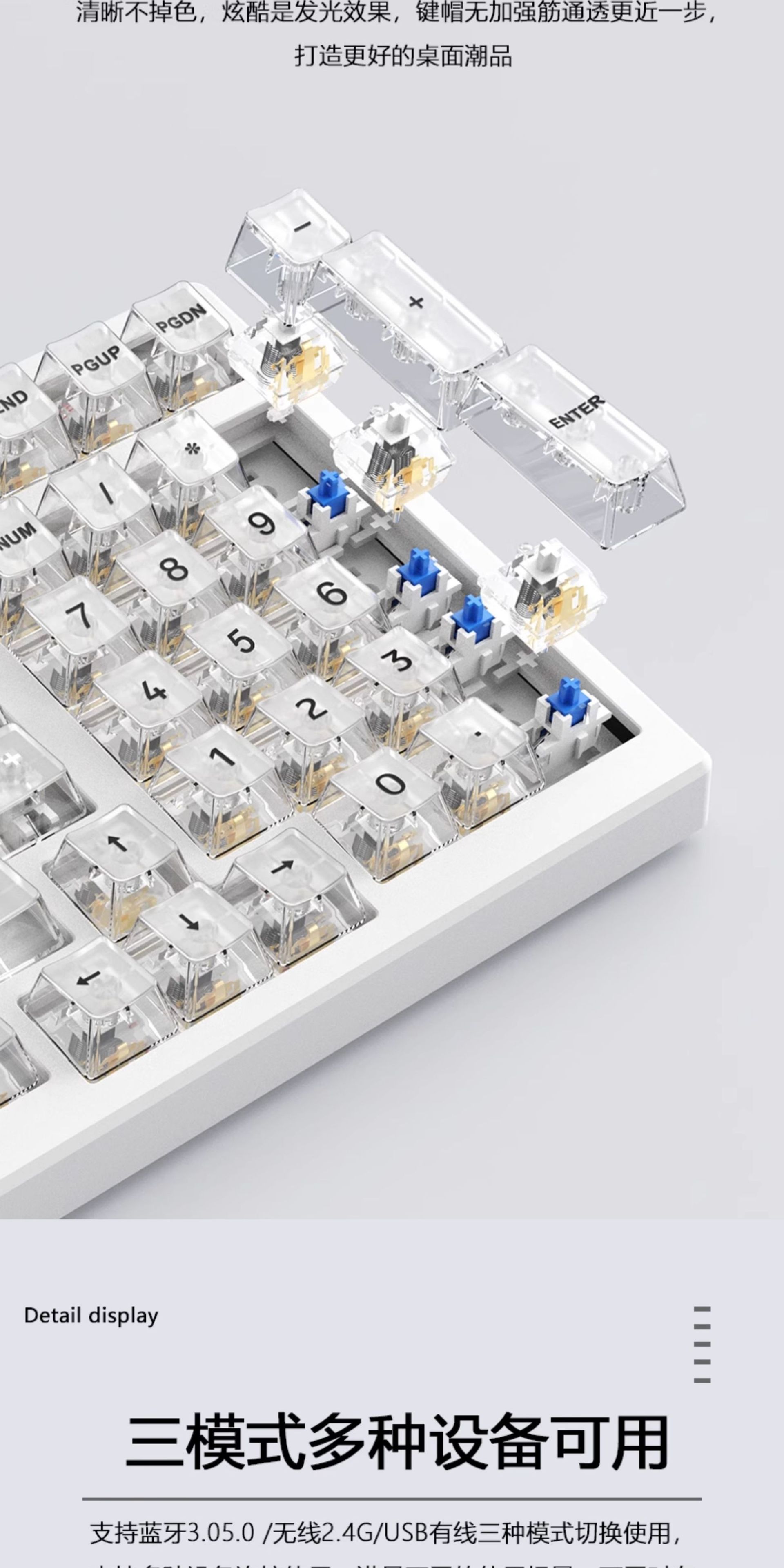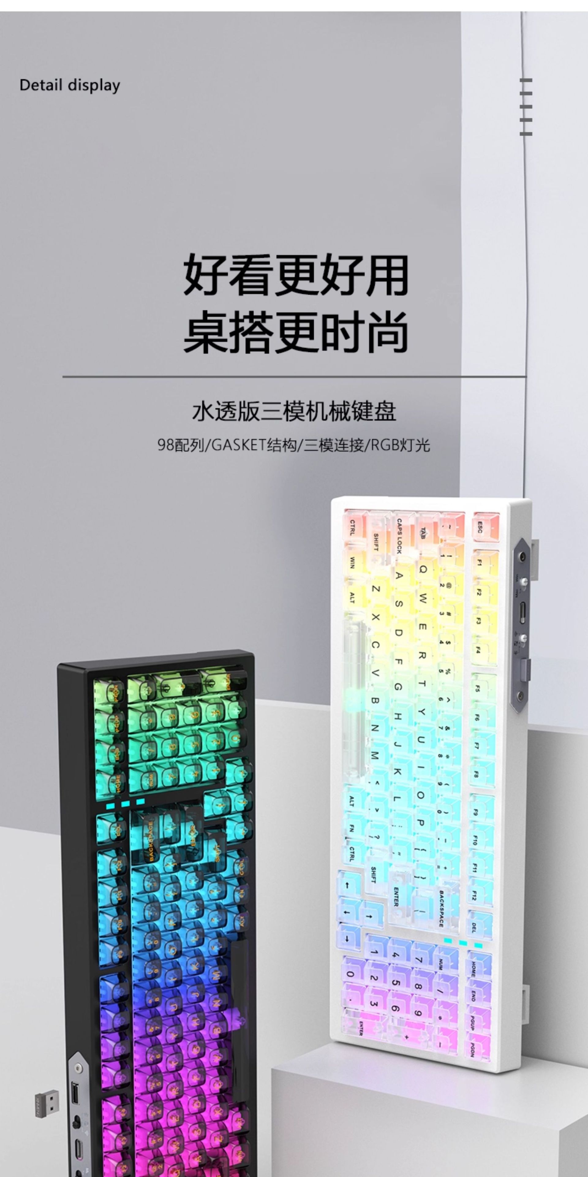 G98 teclado mecánico transparente tres modos RGB en caliente eje enchufable junta teclado personalizado