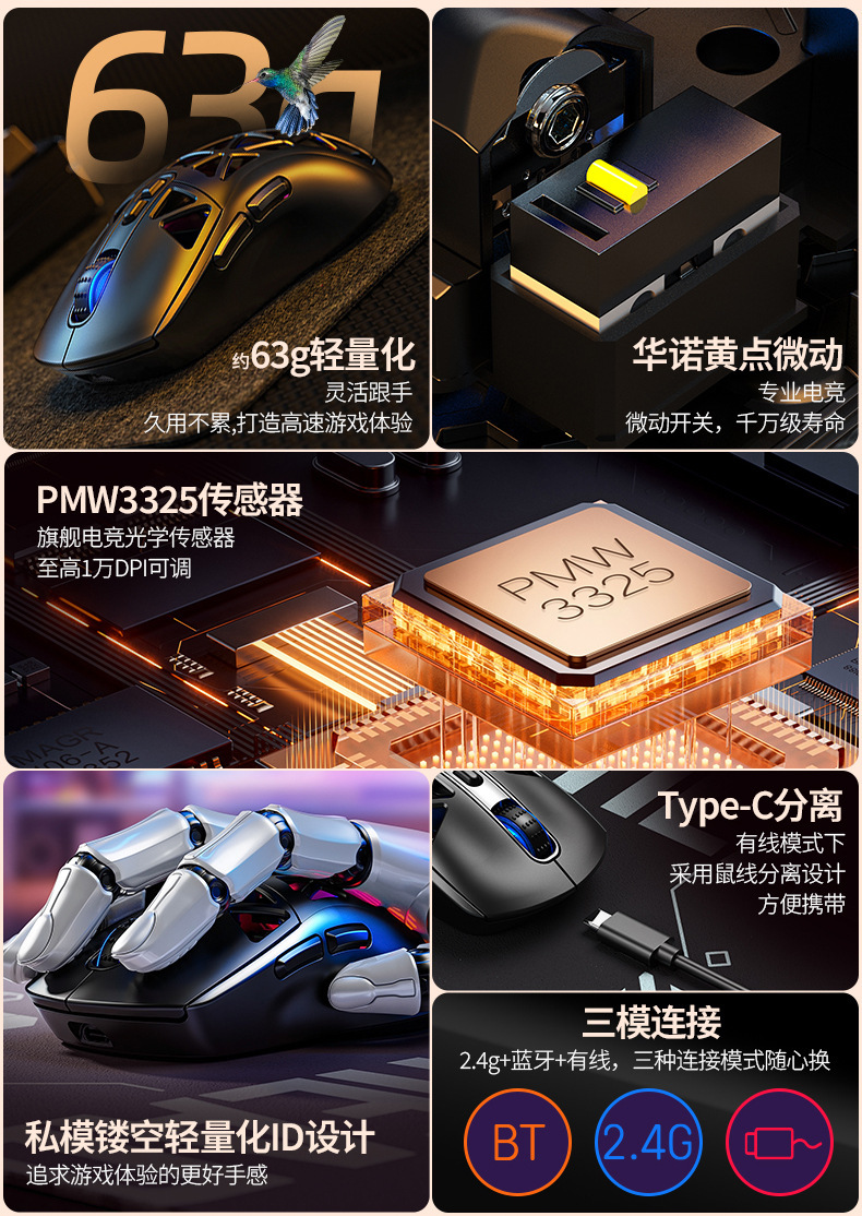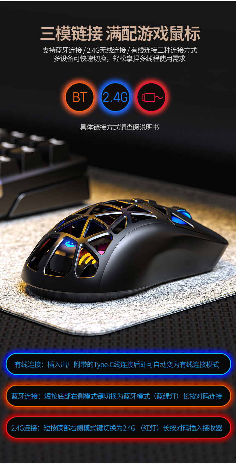 Plata escultura G17 agujero ligero ratón agujero Bluetooth inalámbrico tres modos de juego computadora RGB cable Amazon transfronterizo