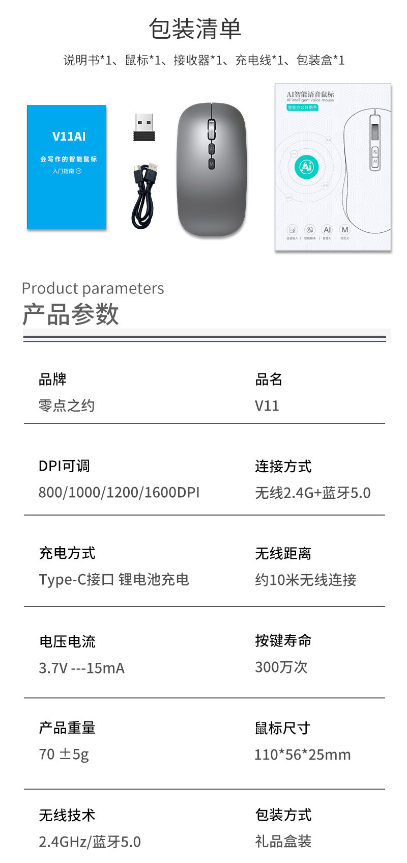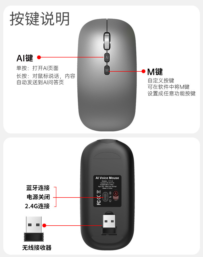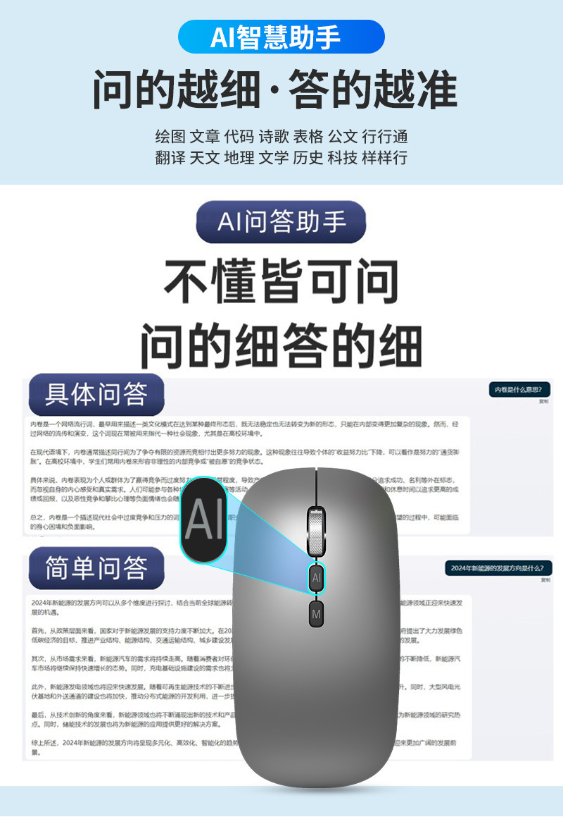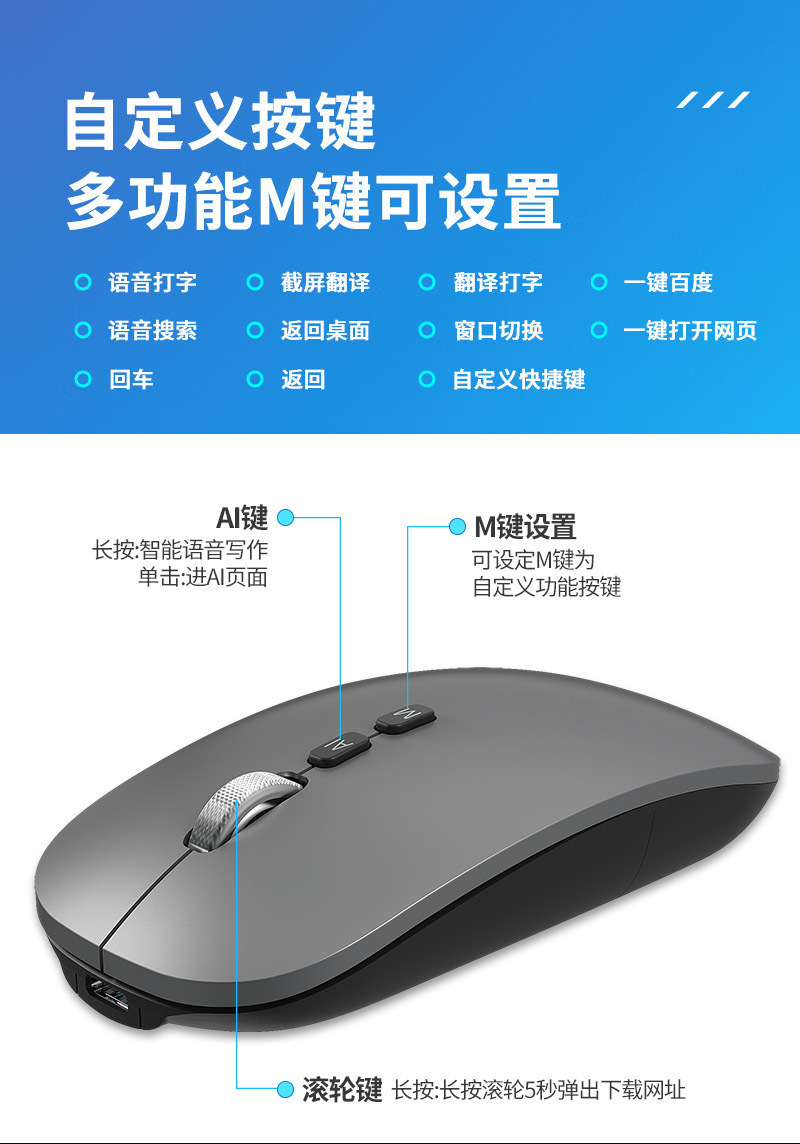 Bluetooth tres modos de voz mecanografía mouse Deepseek traducción copia escritura PPT formulario AI ratón inteligente