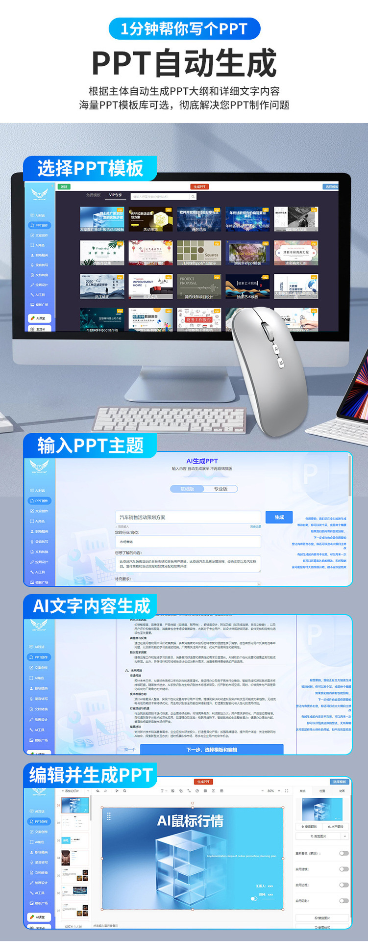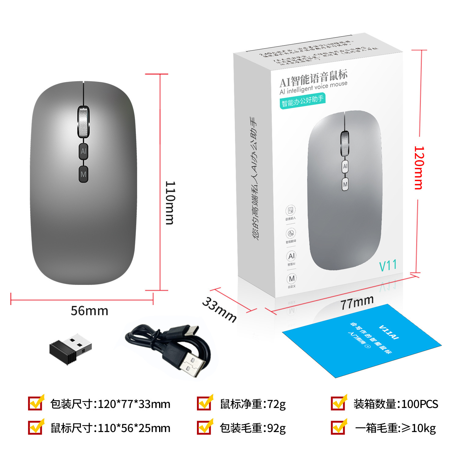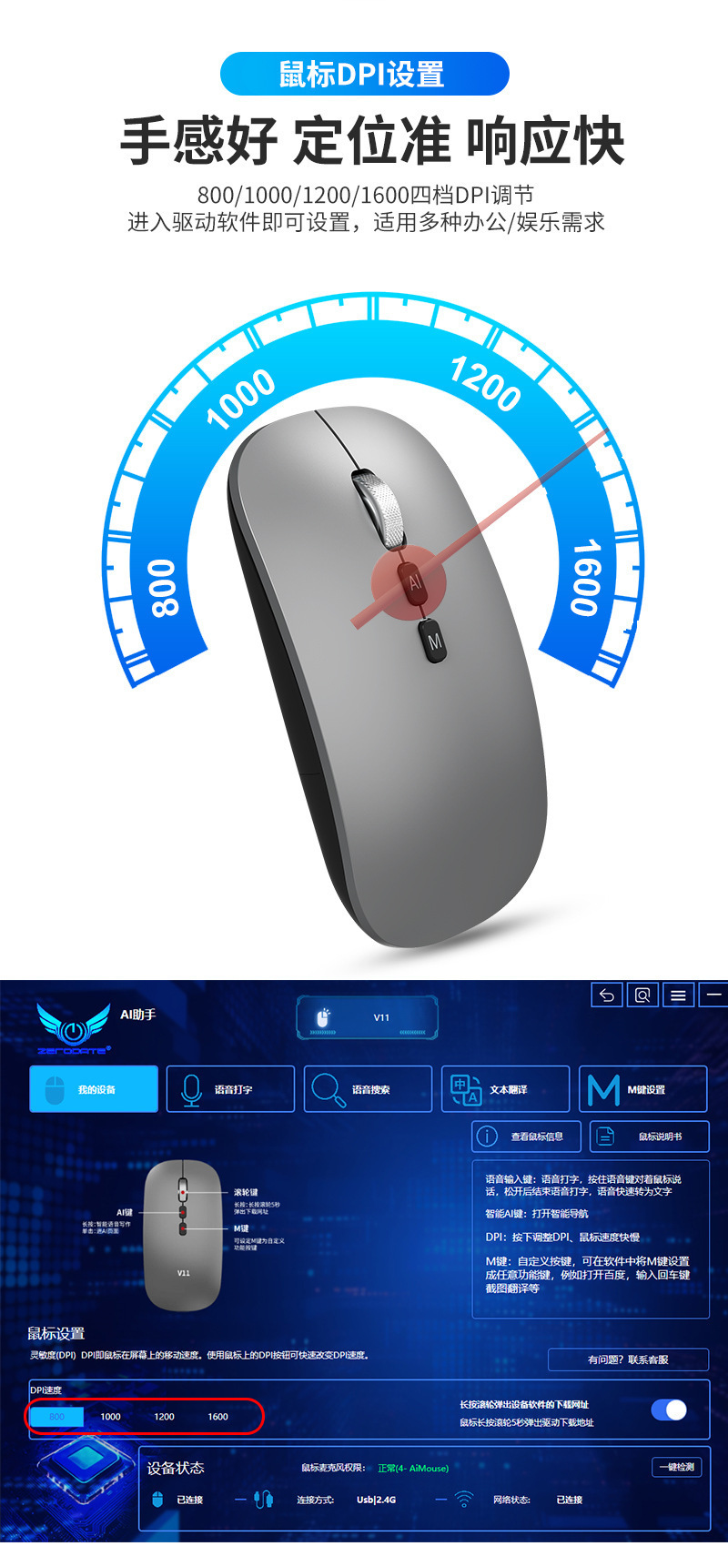 Bluetooth tres modos de voz mecanografía mouse Deepseek traducción copia escritura PPT formulario AI ratón inteligente