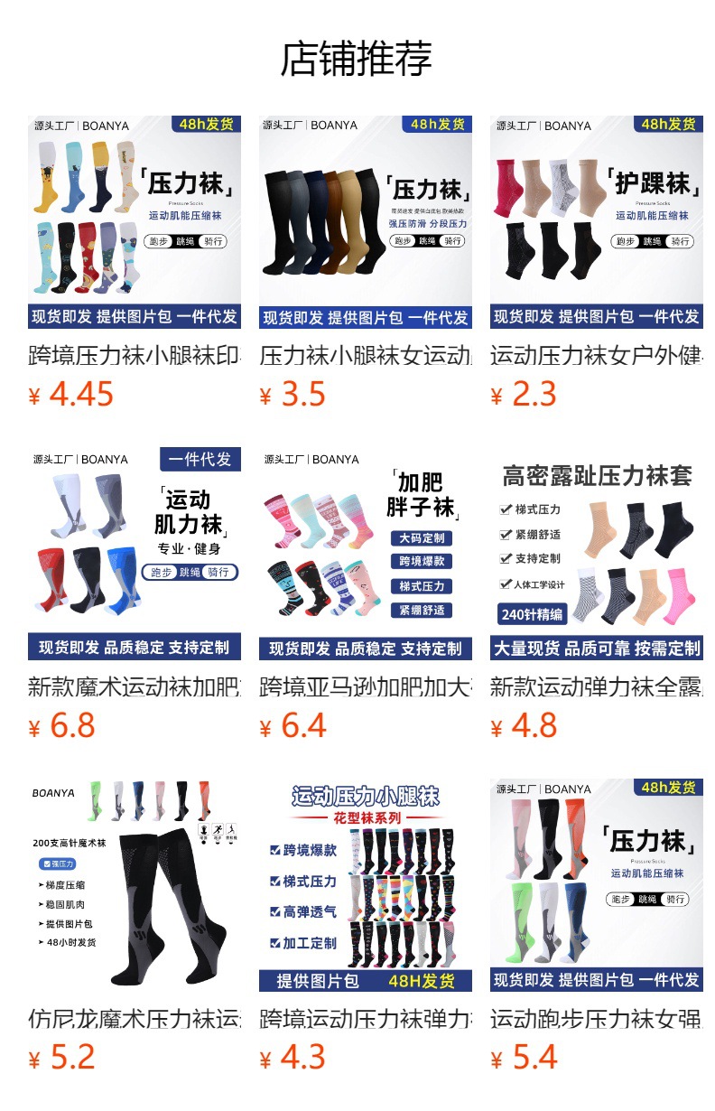Juego transfronterizo de 6 pares de calcetines deportivos de compresión, calcetines elásticos para correr y saltar la cuerda, calcetines largos de compresión para hombre, calcetines hasta la pantorrilla.