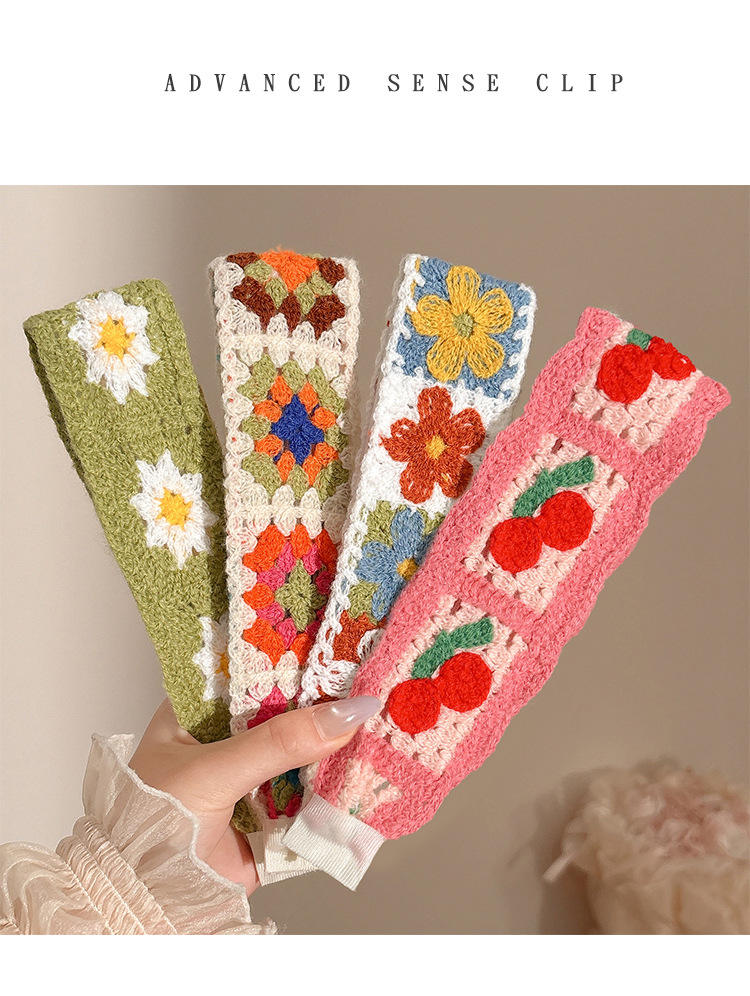 Flor francesa de punto frangeo pegatinas velcro pegatinas para el cabello de mujer no comprime el cabello correa de lavado de la cara banda de cabello tocado