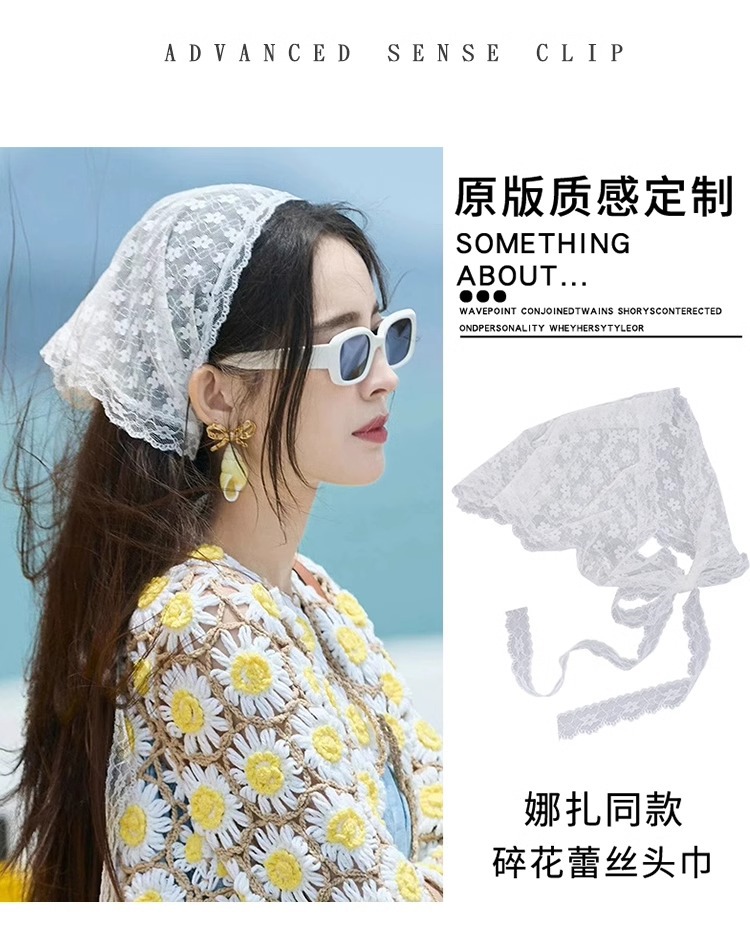 Diadema de encaje blanco, pañuelo para la cabeza, sombrero de toalla cuadrada de una pieza, estilo pastoral, tocado de playa, bufanda triangular francesa para mujer, accesorios para el cabello