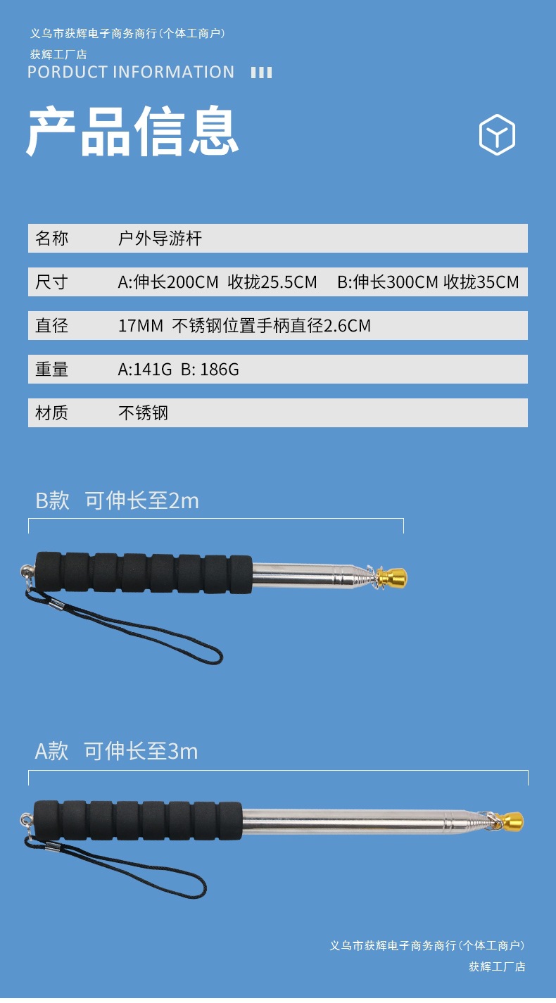 Guía turística retráctil mano fija 2 m bandera 1 m al aire libre engrosse contraído bandera 3 m latigaz 2.5