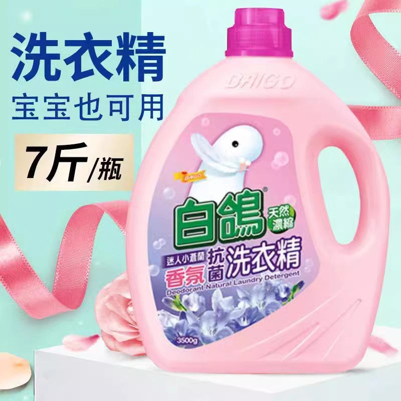 Detergente de lavandería de paloma blanca, botella grande con perfume persistente, detergente de lavandería infantil concentrado