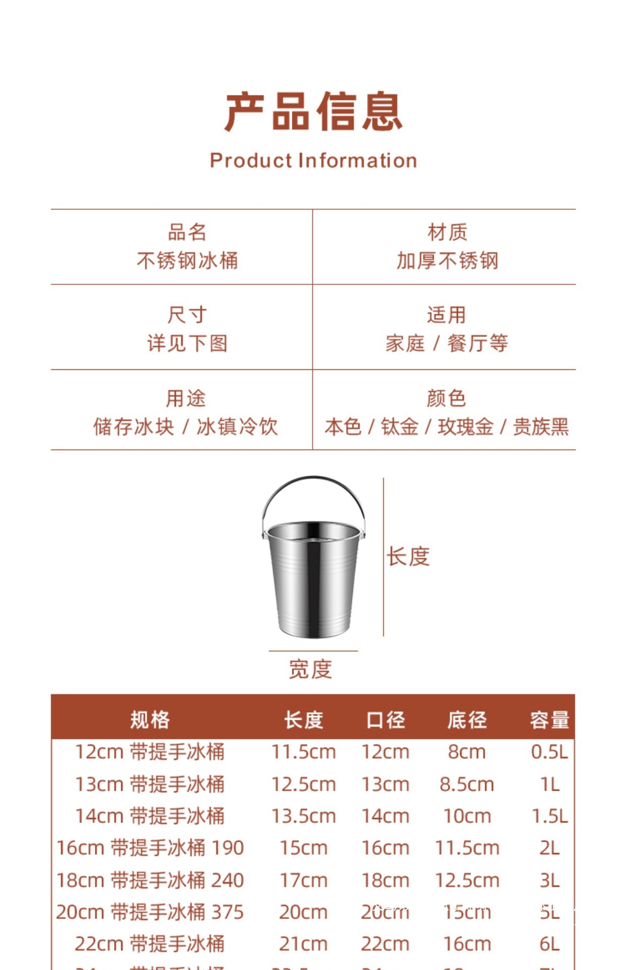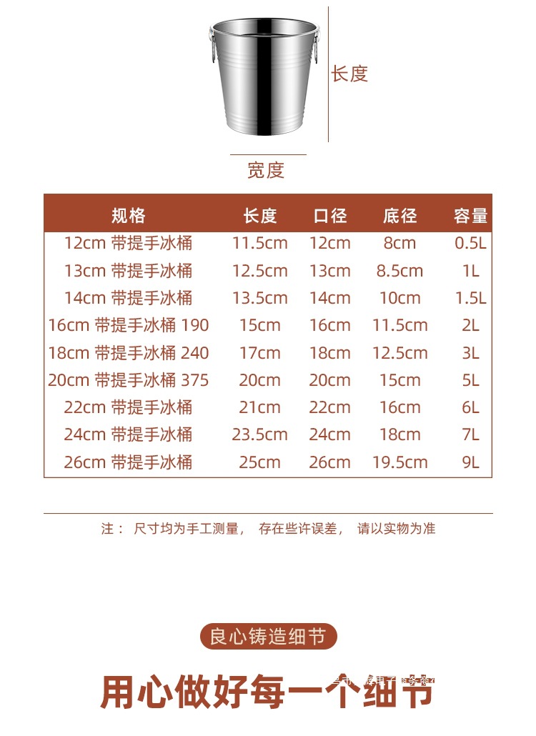 | Tamaño | 迷你银色手提小食桶12cm(0.7L)☆,迷你银色手提小食桶13cm(1.2L)☆,迷你银色手提小食桶14cm(1.7L)☆,银色手提冰桶16cm(2L)送冰夹☆,银色手提冰桶18cm(3L)送冰夹☆,银色手提冰桶20cm(5L)送冰夹☆,银色手提16/18/20cm三只装送冰夹☆,银色手提冰桶22cm(6L)送冰夹☆,银色手提冰桶24cm(7L)送冰夹☆,银色手提冰桶26cm(9L)送冰夹☆,银色手提22/24/26cm三只装送冰夹☆,银色双耳小食桶13cm(1.2L)☆,银色双耳冰桶16cm(2L)送冰夹☆,银色双耳冰桶18cm(3L)送冰夹☆,银色双耳冰桶20cm(5L)送冰夹☆,银色双耳冰桶22cm(6L)送冰夹☆,银色双耳冰桶24cm(7L)送冰夹☆,银色双耳冰桶26cm(9L)送冰夹☆,迷你金色手提小食桶13cm(1.2L)☆,迷你金色手提小食桶14cm(1.7L)☆,土豪金手提小食桶16cm(2L)☆,16cm发财桶+(5张发财卡套)☆,土豪金手提冰桶18cm(3L)送冰夹☆,土豪金手提冰桶20cm(5L)送冰夹☆,土豪金手提冰桶22cm(6L)送冰夹☆,土豪金手提冰桶24cm(7L)送冰夹☆,土豪金手提冰桶26cm(9L)送冰夹☆,迷你黑手提小食桶12cm(0.7L)☆,迷你黑手提小食桶13cm(1.2L)☆,迷你黑手提小食桶14cm(1.7L)☆,迷你黑手提小食桶16cm(2L)☆,黑手提冰桶18cm(3L)送冰夹☆,黑手提冰桶20cm(5L)送冰夹☆,银色304不锈钢双层冰桶1.6L送夹☆,银色304不锈钢双层冰桶2L送夹☆,银色304不锈钢双层冰桶3L送夹☆,土豪金304不锈钢双层冰桶1.6送夹☆,土豪金304不锈钢双层冰桶2L送夹☆,土豪金304不锈钢双层冰桶3L送夹☆,加厚304钢小食桶银色11cm(0.7L)☆,加厚304钢小食桶银色13cm(1L)☆,加厚304钢小食桶银色14cm(1.8L)☆,加厚304钢小食桶土豪金11cm(0.7L)☆,加厚304钢小食桶土豪金13cm(1.2L)☆,加厚304钢小食桶土豪金14cm(1.8L)☆,冰粒桶带隔水片(1L)送冰夹☆,5号冰铲(特厚小号)铲米约130克☆,4号冰铲(特厚小号)铲米约230克☆,3号冰铲(特厚中号)铲米约300克☆,2号冰铲(特厚大号)铲米约450克☆,1号冰铲(特厚特大号)铲米约700克☆,小号银色鹿角3L☆,小号金色鹿角3L☆,大号银色鹿角5L☆,大号金色鹿角5L☆,大号麋鹿黑金色5L☆ |