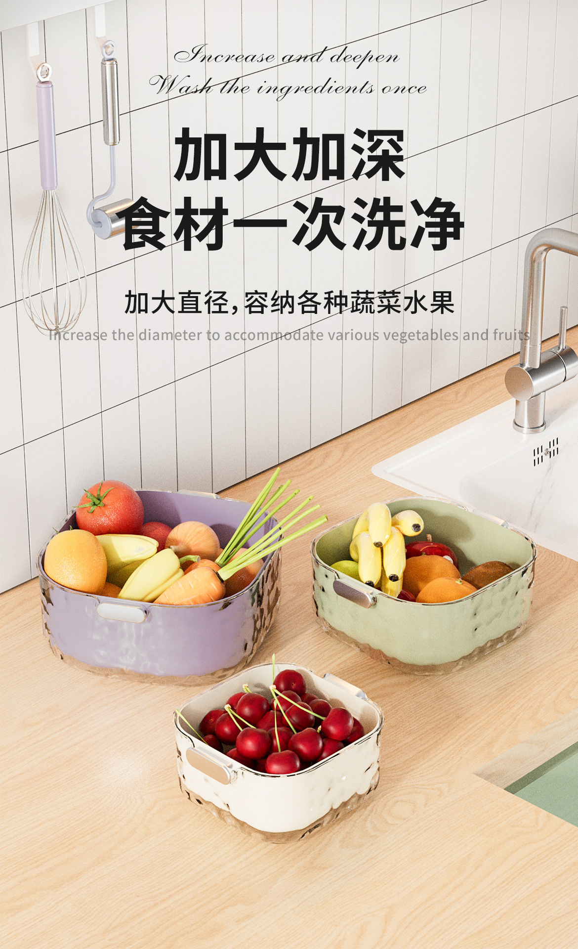 Nuevo conjunto de lavabo de verduras de doble capa, cesta de drenaje, cocina de plástico doméstico, bandeja de frutas de lavado, mesa de té, sala de estar, cesta de verduras