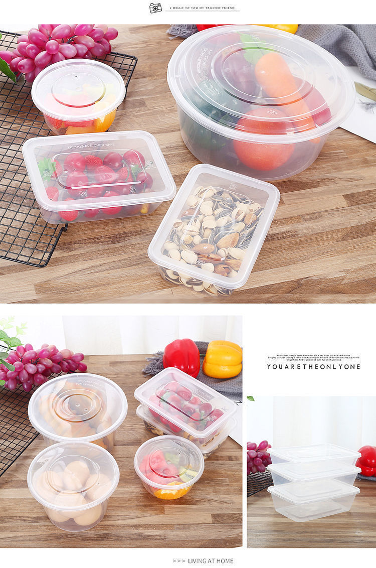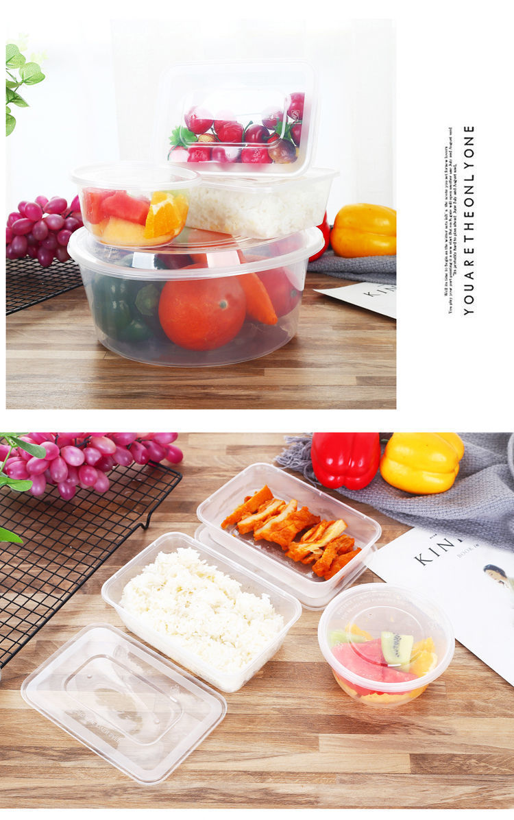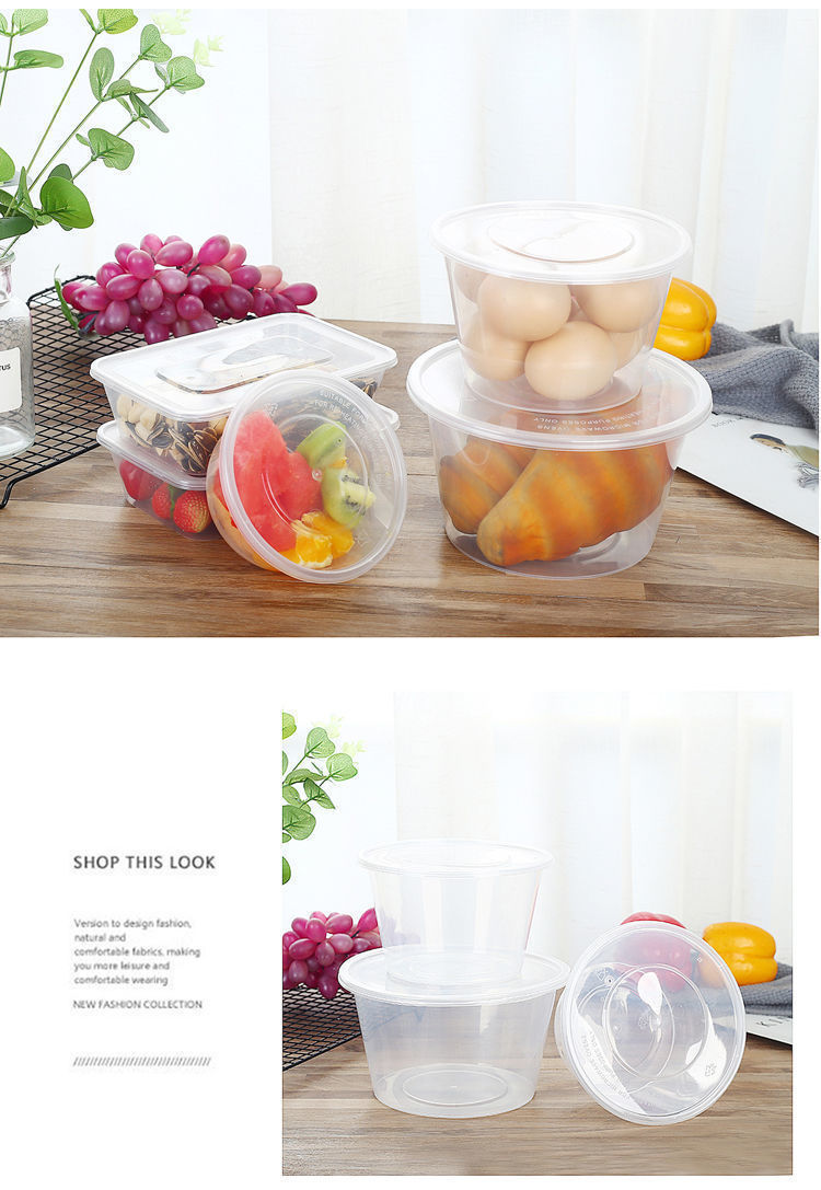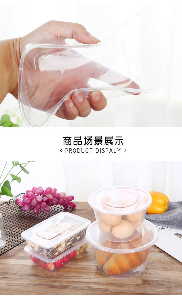 1000ML redondo caja de comidas desechable caja de embalaje casera caja de comidas de plástico transparente tazón de sopa con tapa