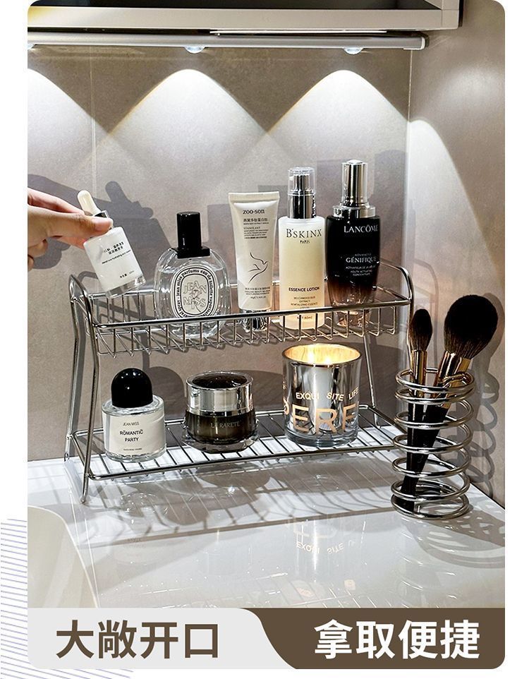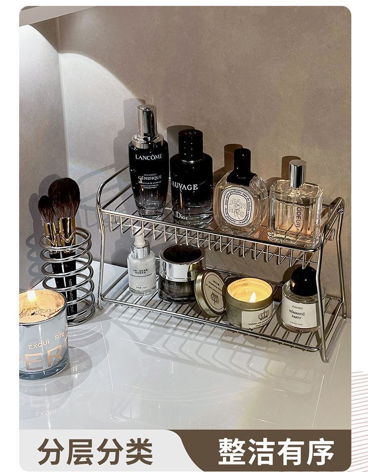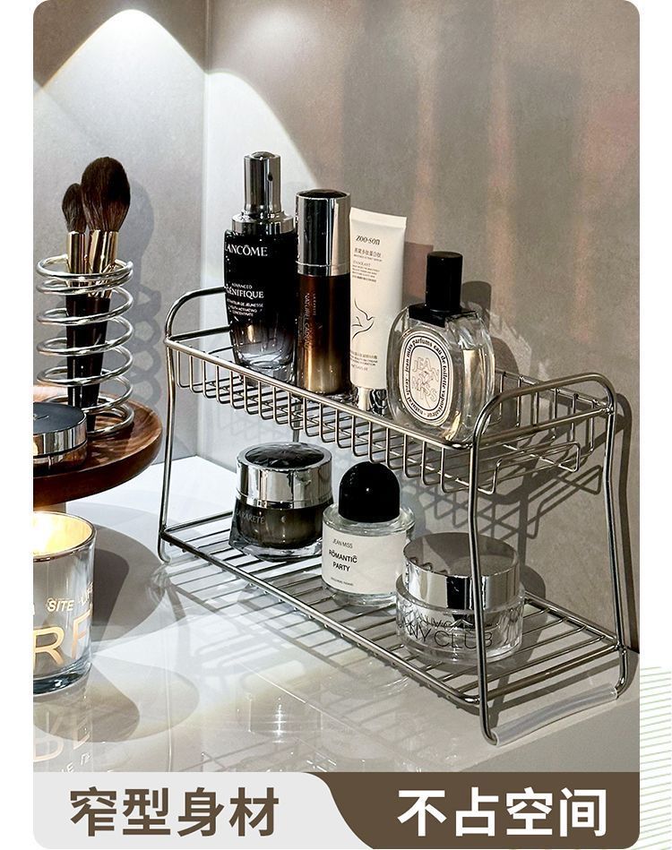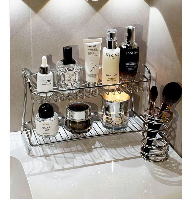 lavabo de acero inoxidable estante de almacenamiento de doble capa de baño de almacenamiento de cosméticos para productos de cuidado de la piel estante de almacenamiento