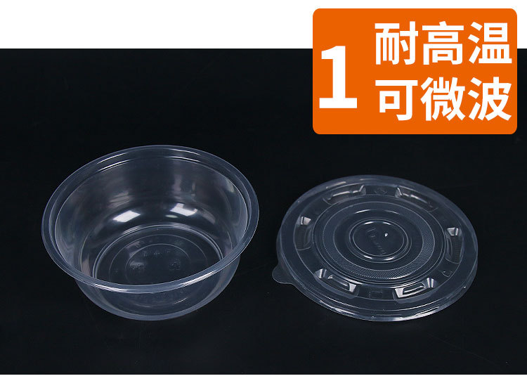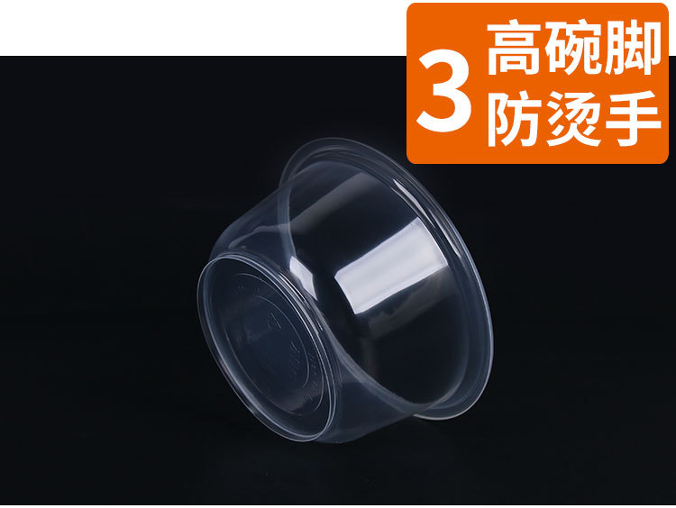 Bowl desechable de plástico doméstico pequeño conjunto de tazón de arroz redondo caja de almuerzo empaquetado caja de comedor cubiertos hielo en polvo tazón y palillos comerciales