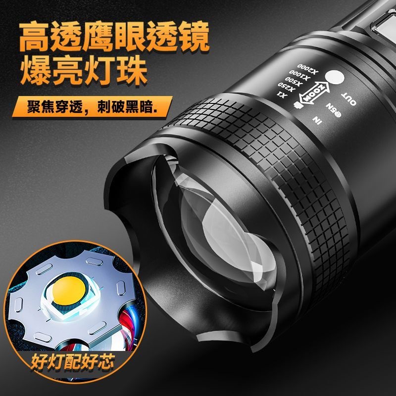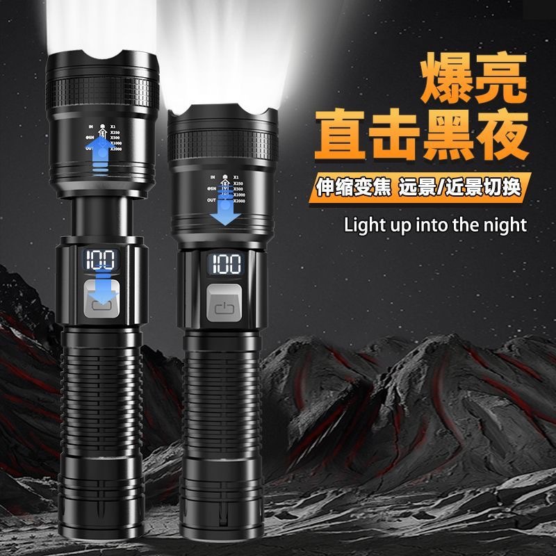 [Lightning Warehouse] Patrulla al aire libre transfronteriza condensadora de luz de emisión remota linterna de luz intensa portátil de carga pequeña estiramiento
