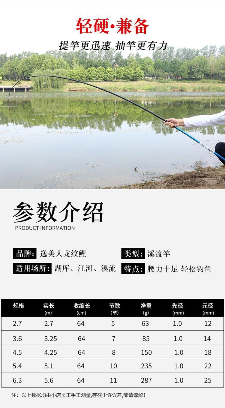 Caña de pesca, palo de mano, carpa super dura, carpa, conjunto de equipos de pesca de palo de arroyo corto
