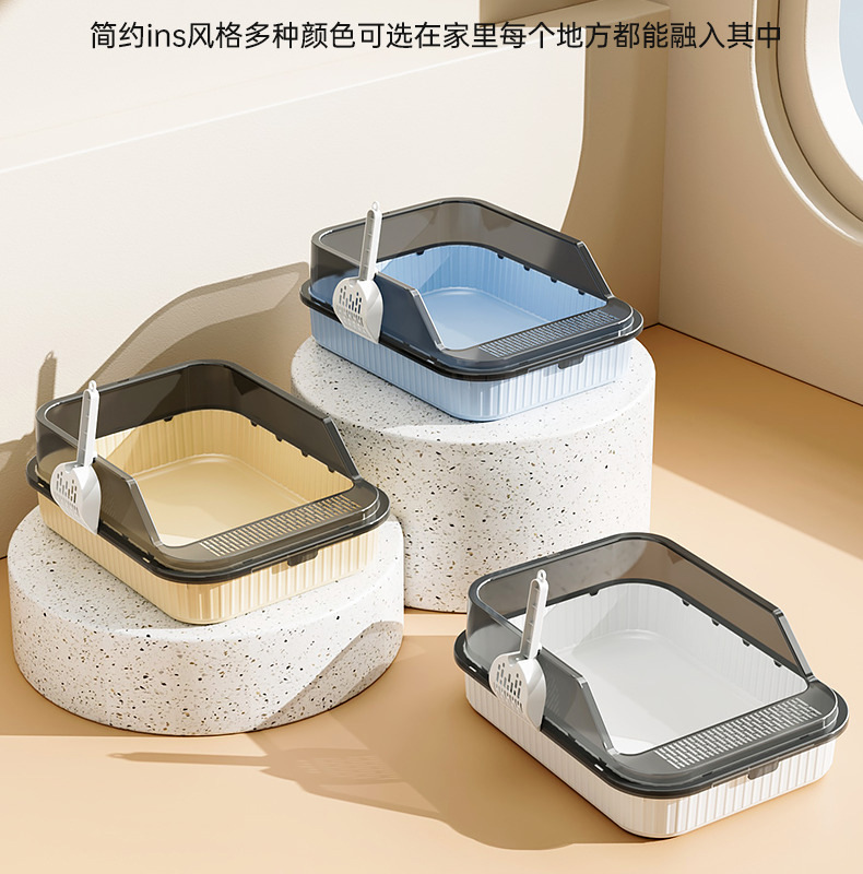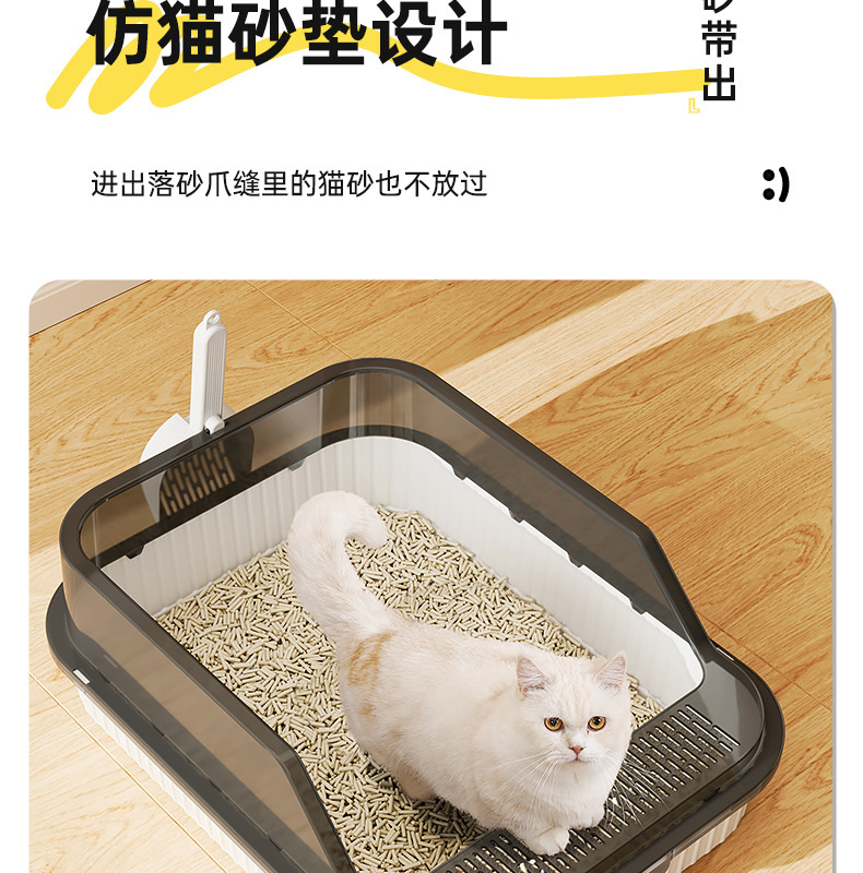 Baño de arena para gatos anti-spillado exterior con arena, baño para gatos grande, arena para gatos semicerrada, lavabo para gatos pequeños